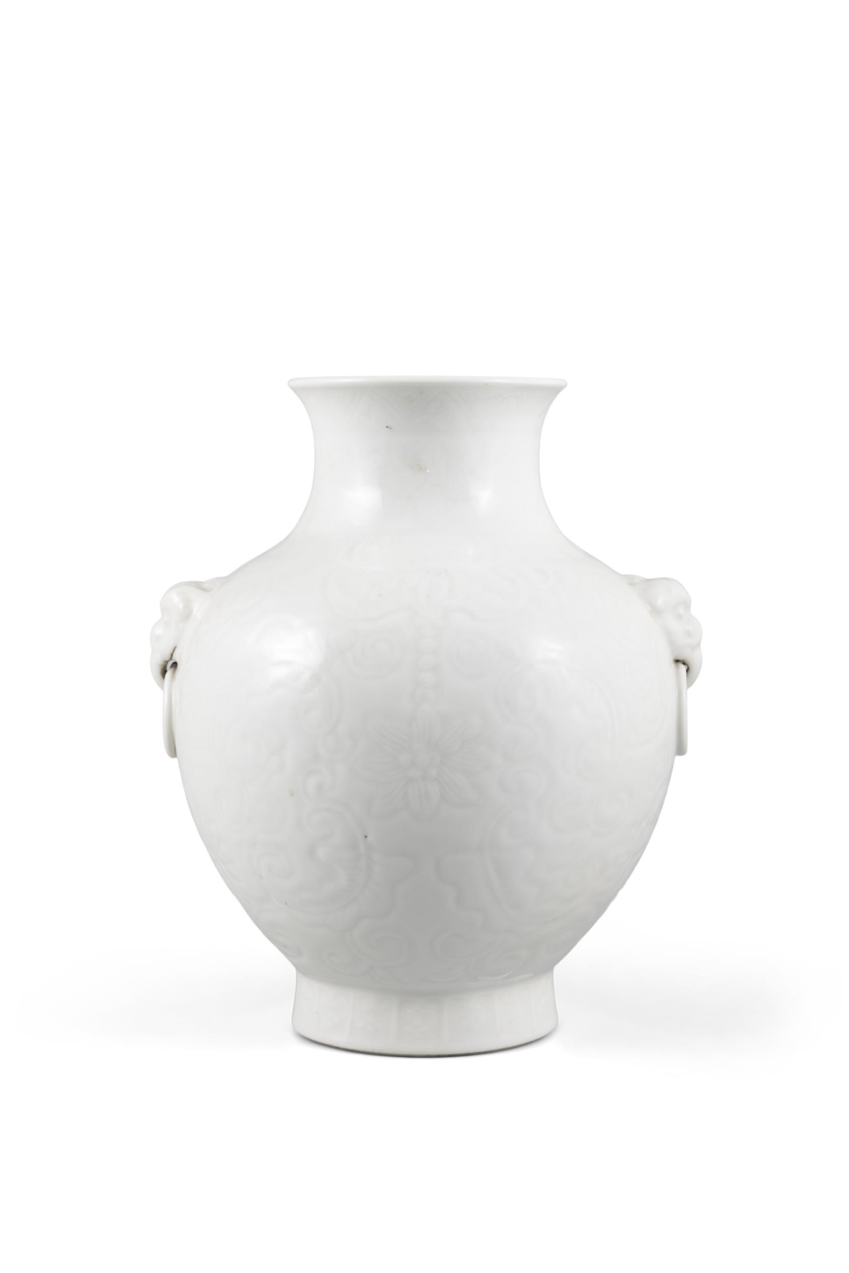 A WHITE GLAZED ARCHAIC STYLE VASE, INCISED WITH LOTUS, MARKED QIANLONG 20??? ??? ??????? China, early 20th century H: 24cm