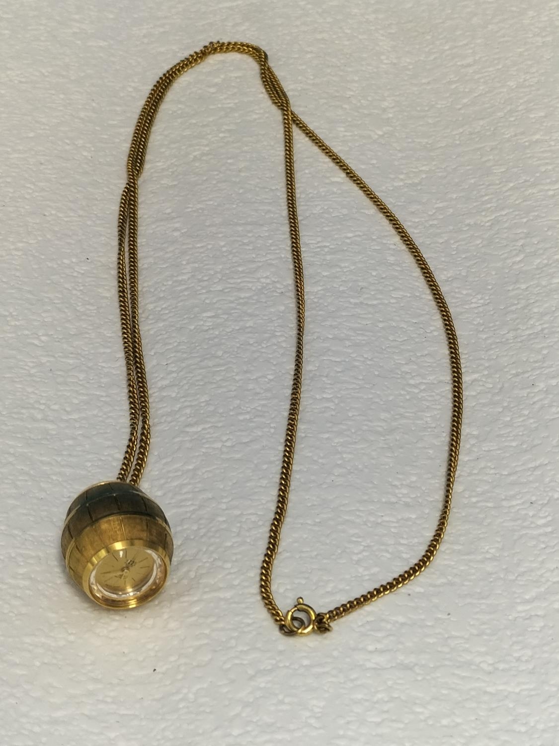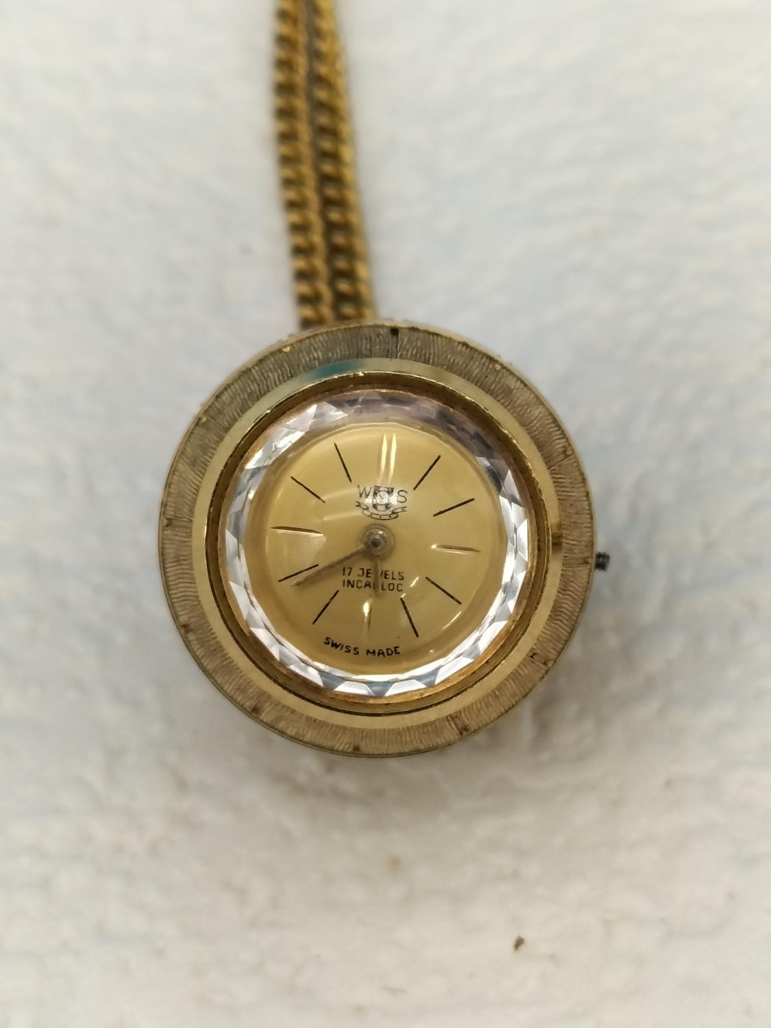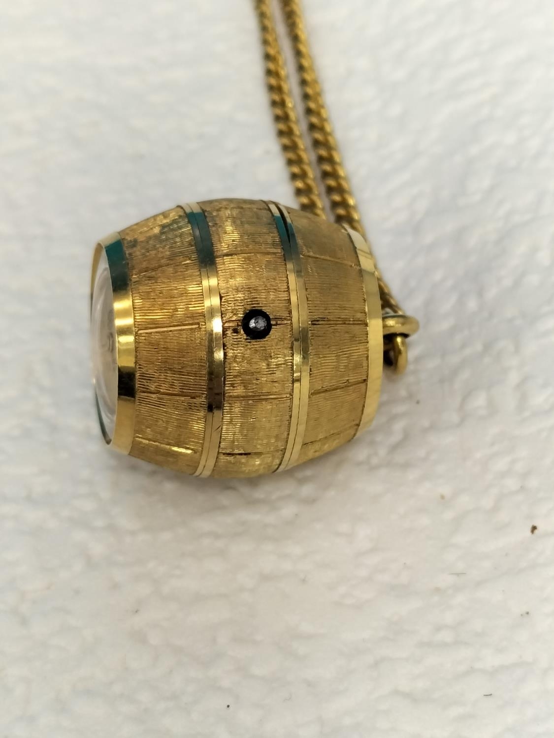 Wilson 17 Jewel Incabloc Barrel Design Watch Pendant on 32" Chain. A/F Missing Crown.
