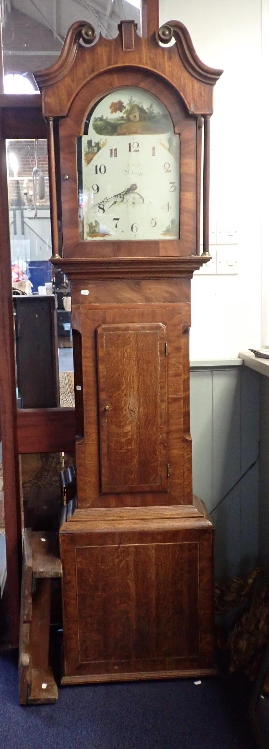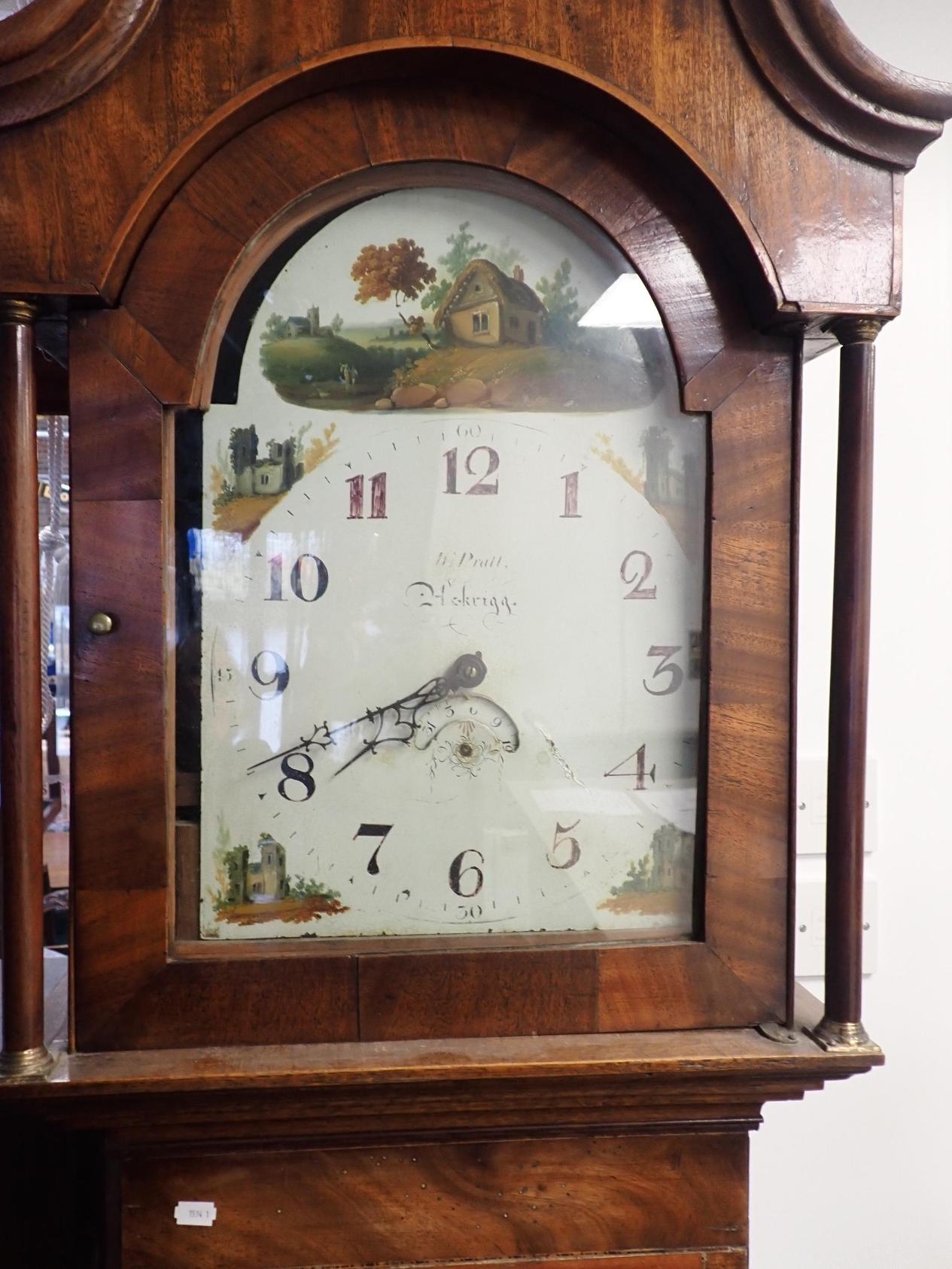 A 19TH CENTURY OAK AND MAHOGANY LONGCASE CLOCK with thirty-hour movement, the painted dial signed 'W. Pratt, Askrigg' (needs attention)