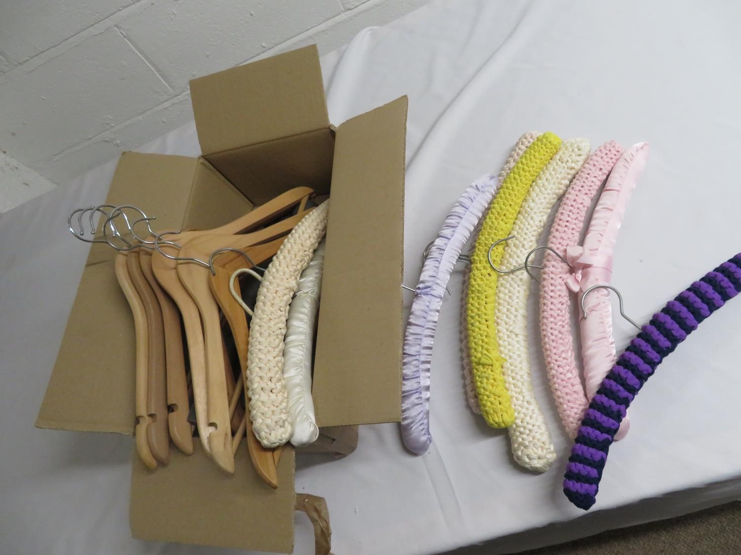 Box of vintage coat hangers