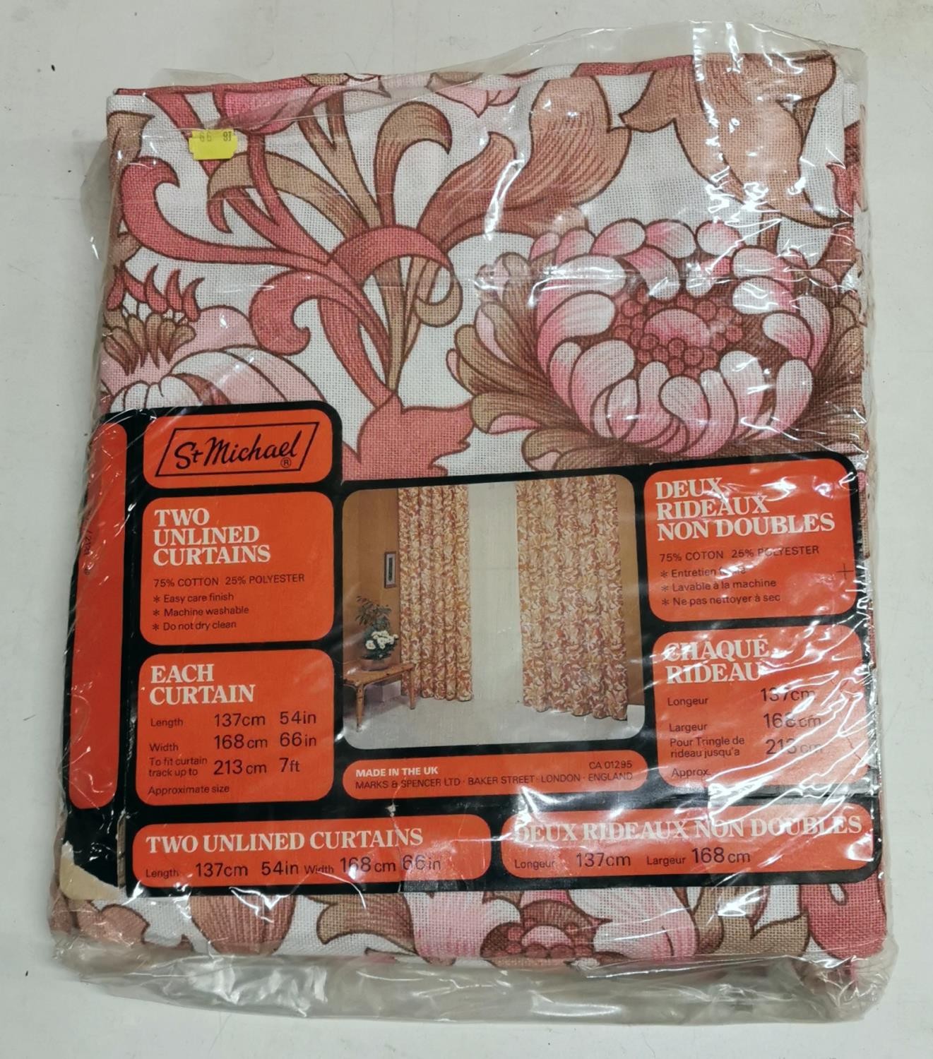 New vintage St Michaels pair of floral patterned unlined curtains - 54l x 66w