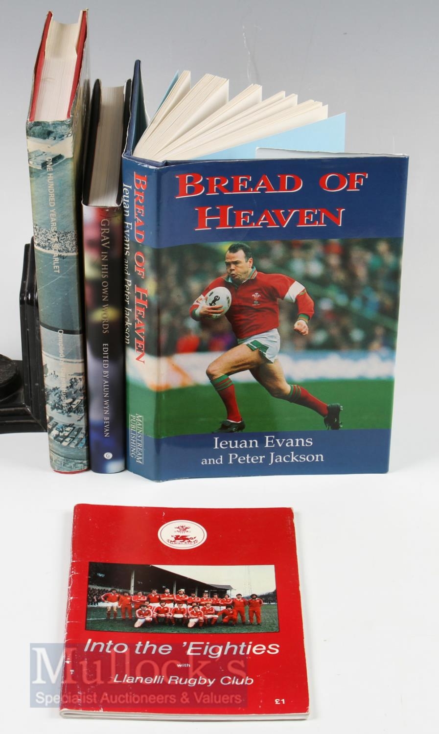 Llanelli Interest Selection Rugby Books (4): Scarce & sought-after 100 Years of Scarlet, Gareth Hughes, limited edition 1983, near mint; Into the 80s with Llanelli Rugby Club, Llanelli & Dist SupportersĀ Club, 1980; Bread of Heaven, Ieuan Evans/Peter Jackson 1995, signed & dedicated; Grav in his own words, Ray Gravell & Alun Wyn Bevan, 2008. Lovely & VG