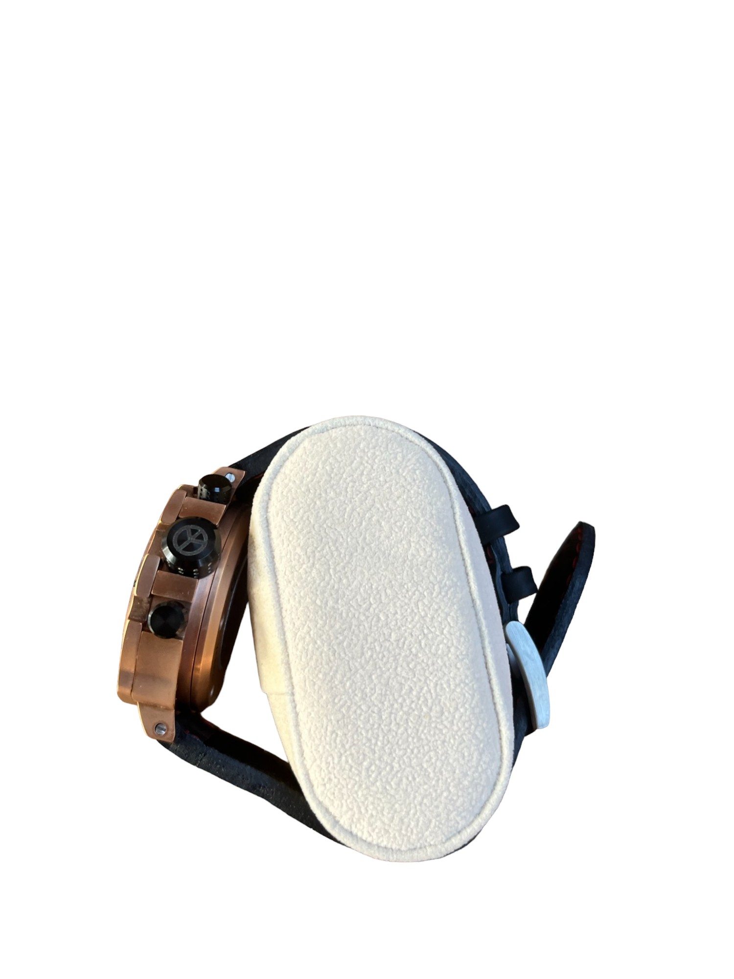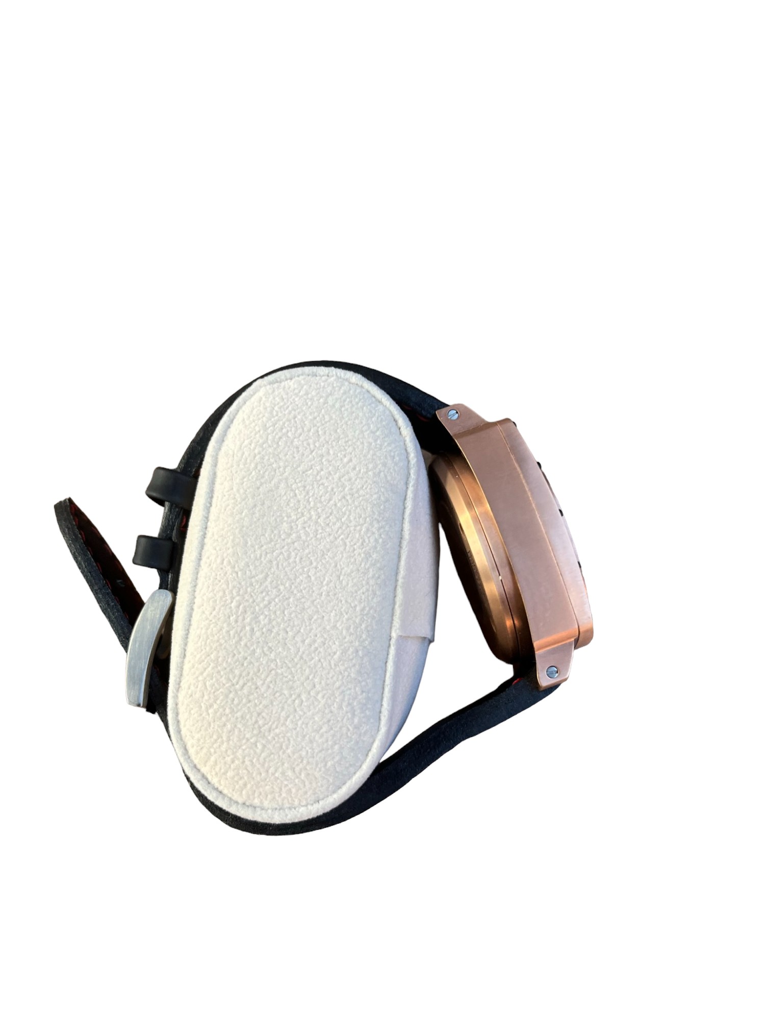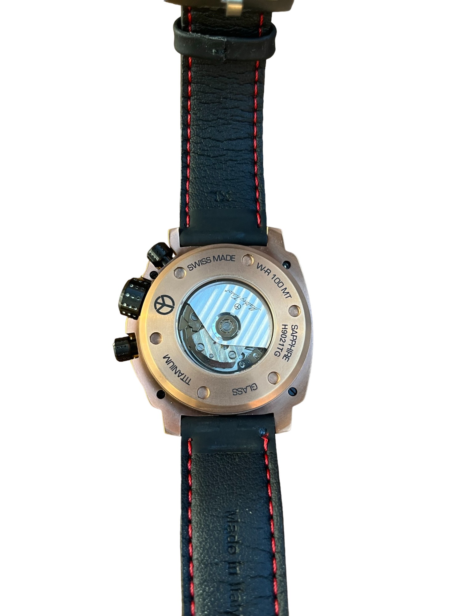 Swiss Made, titanium case, Leather & Rubber strap, 43.5mm Diameter case, 14mm thick.