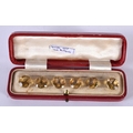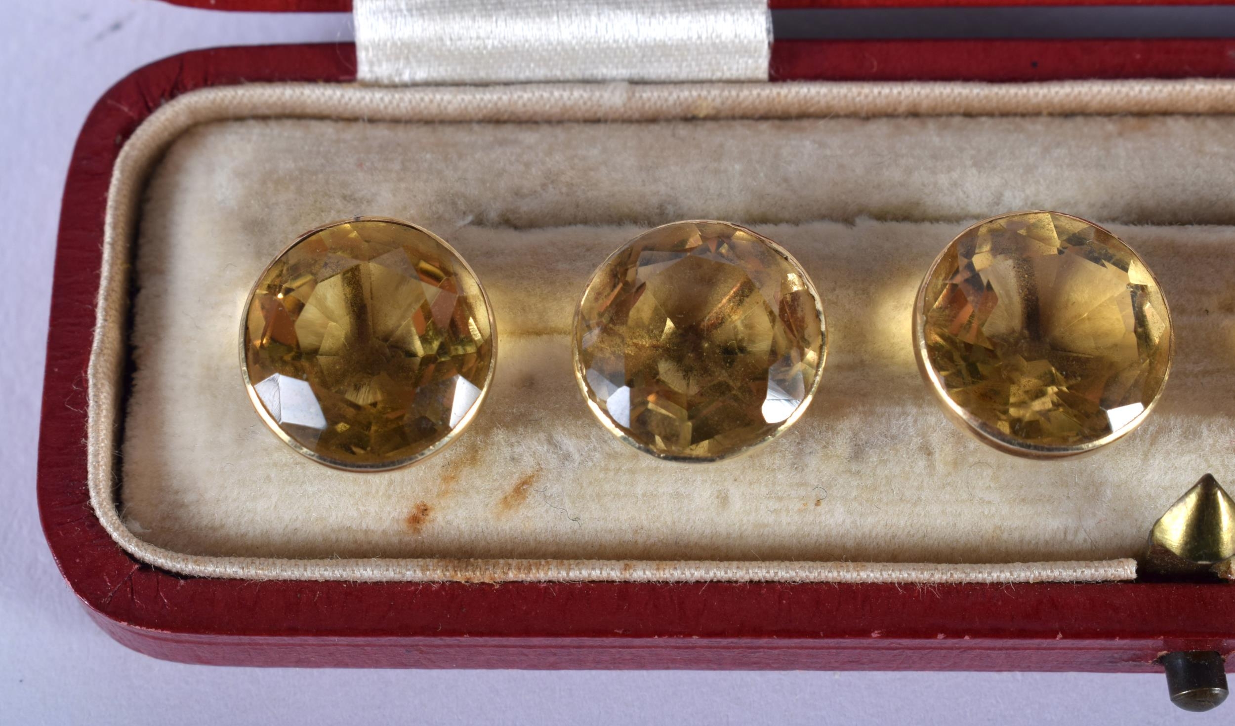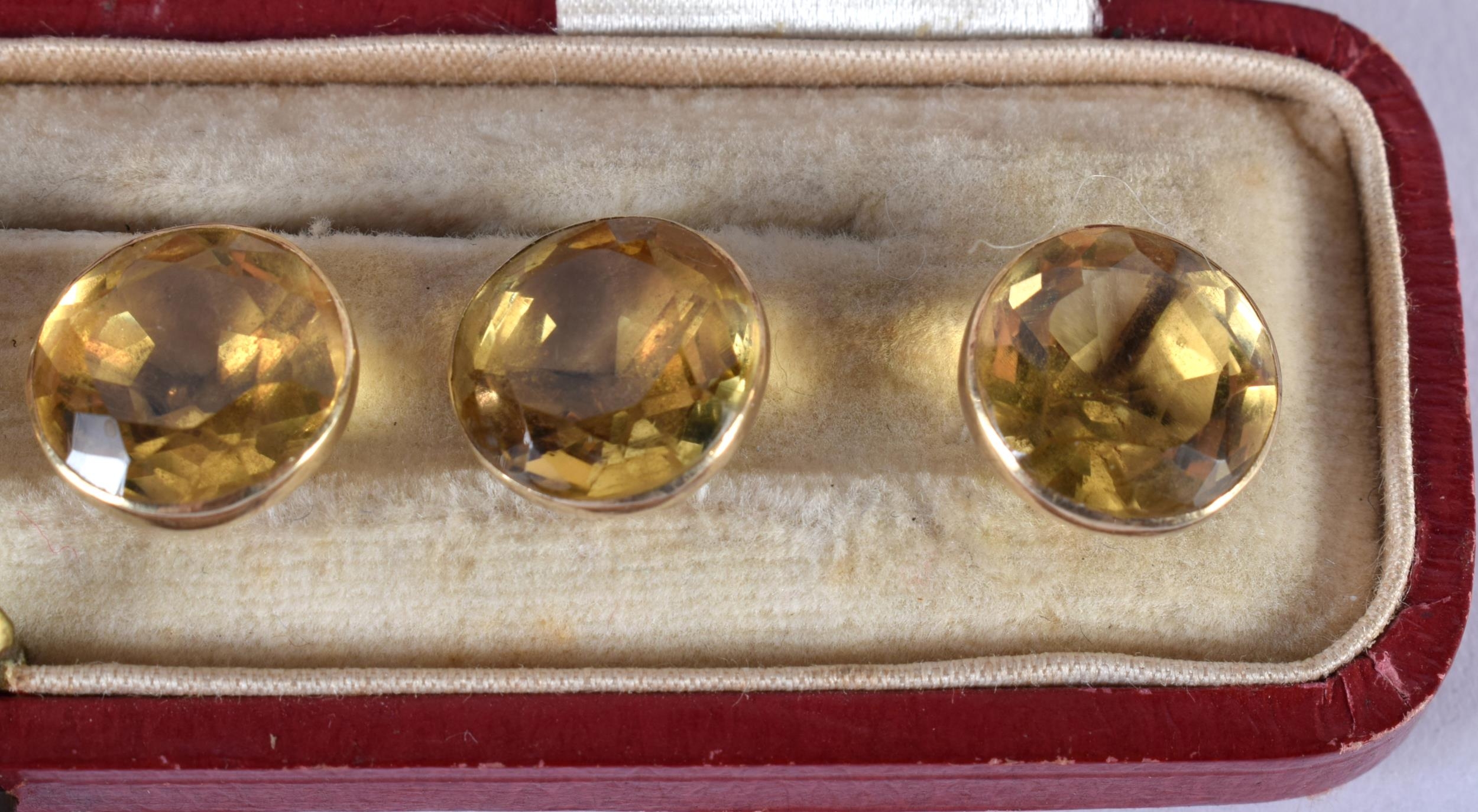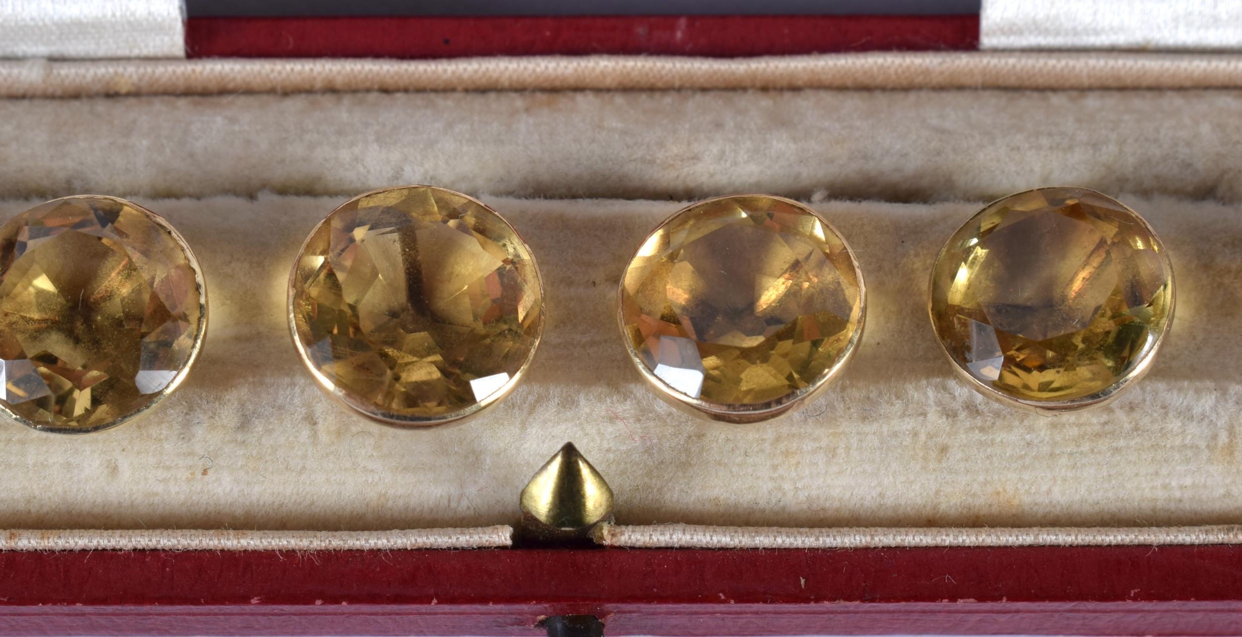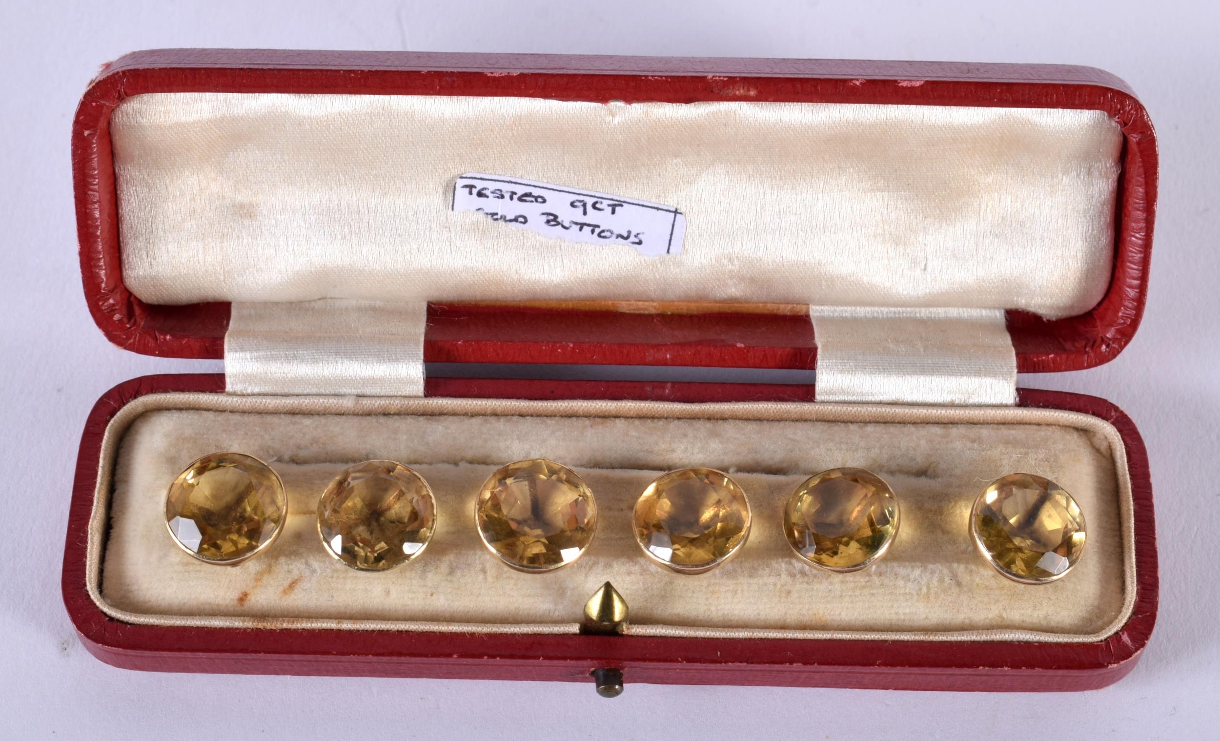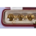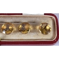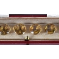 A Cased set of Six 9ct Gold Mounted Citrine Buttons. 1cm diameter