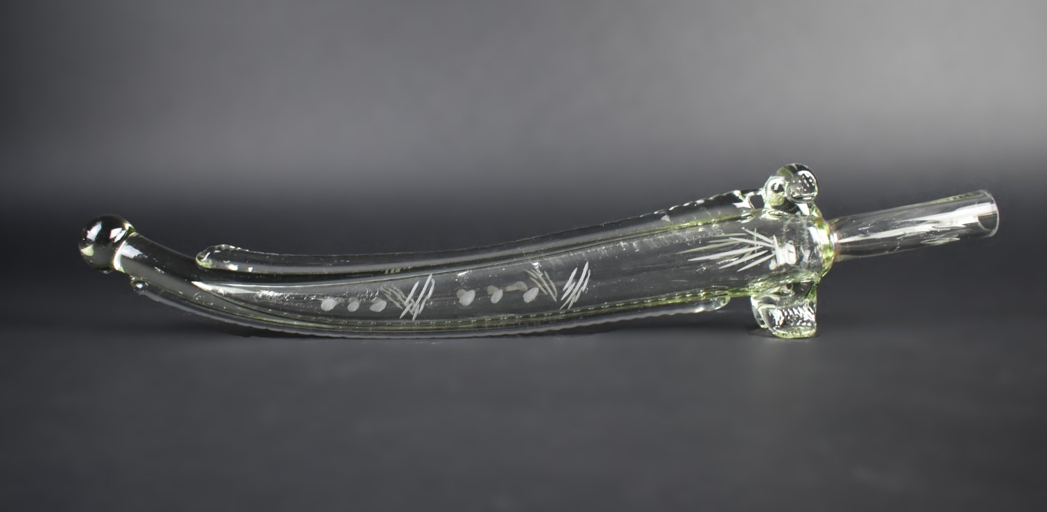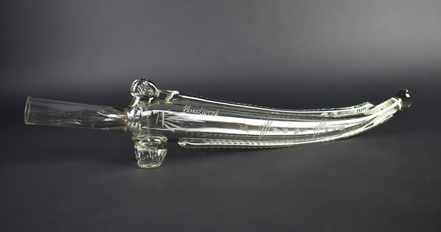 A Novelty Decanter Bottle in the Form of a Sword and Scabbard, Inscribed and Engraved 'Handwork', 44cms Long