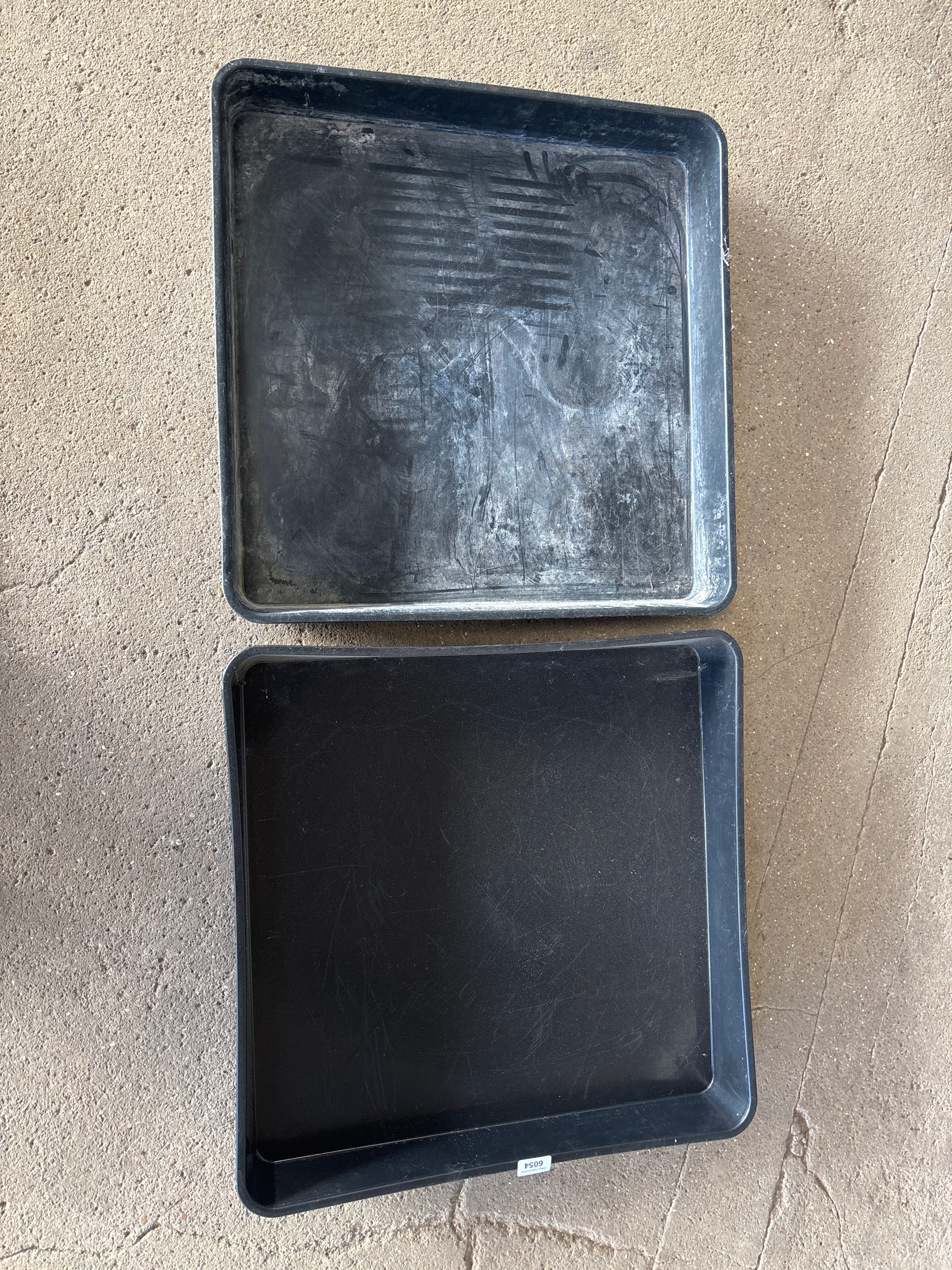 Two plastic water trays - 59cm x 59cm x 7cm depth