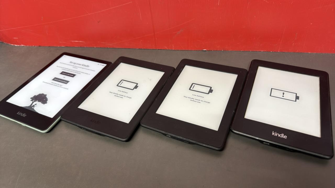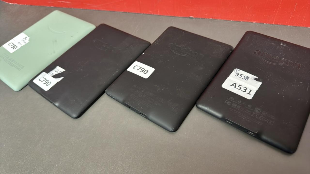 X4 AMAZON KINDLE E-READERS INCL. M2L4EK & DP75SDI / EACH REPORTED TO BE BLACK-LISTED