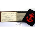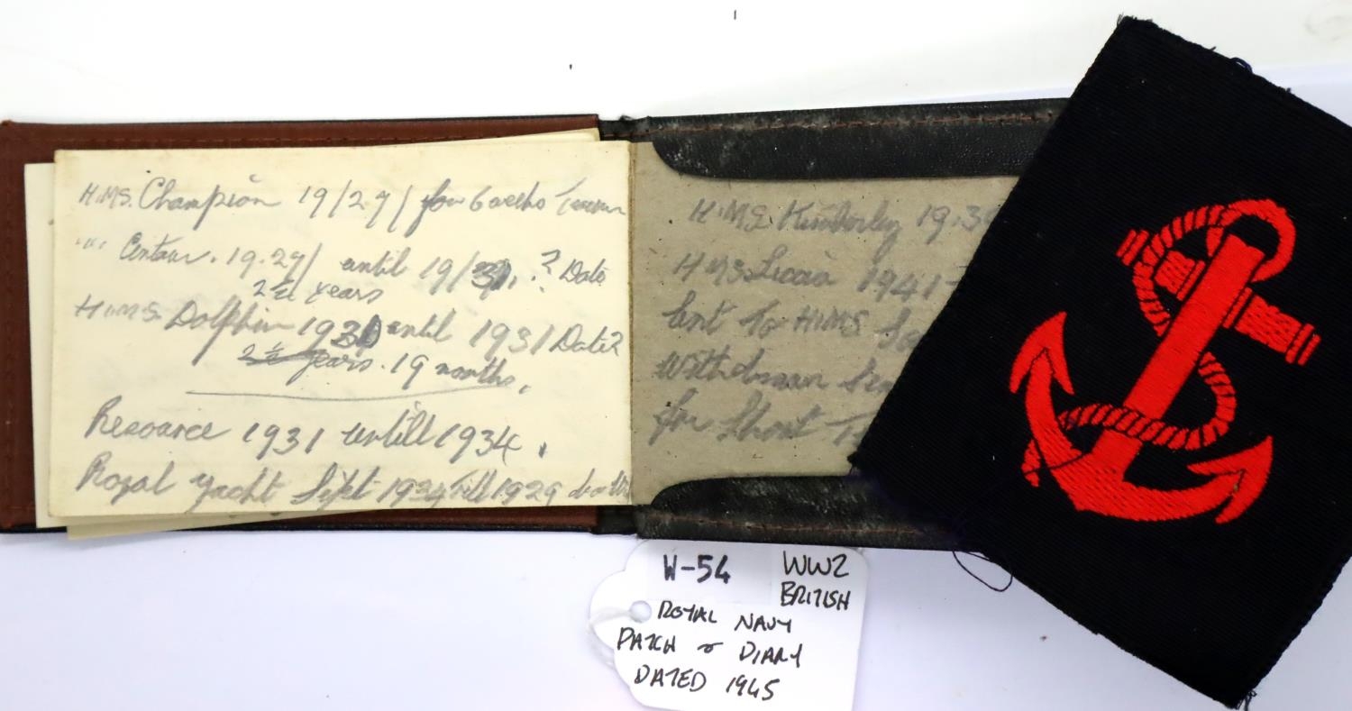 WWII Royal Navy diary with some entries and insignia. P&P Group 1 (£14+VAT for the first lot and £1+VAT for subsequent lots)