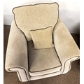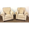 A pair of modern deep and cushioned armchairs; 72cm high at frame/ 97cm high (inc cushion), 99cm wide, 87cm depth (arm)