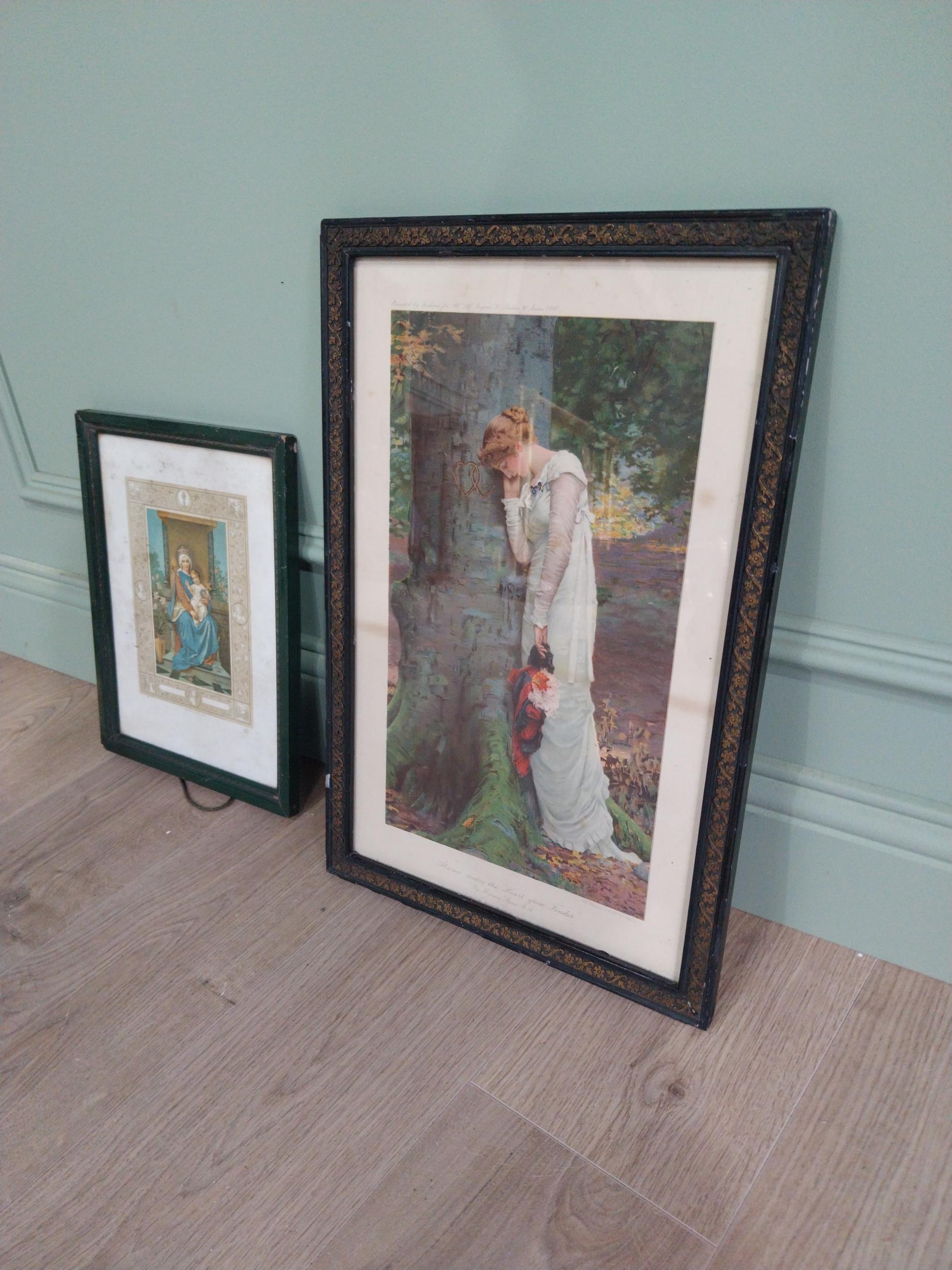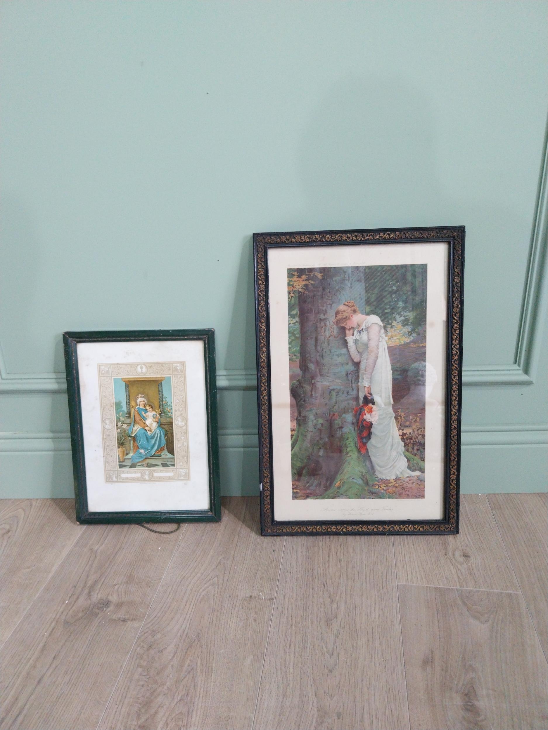 Two early 20th C. coloured prints - Religious scene and Grecian Lady scene {54 cm H x 35 cm W and 36 cm H x 27 cm W}.