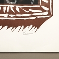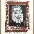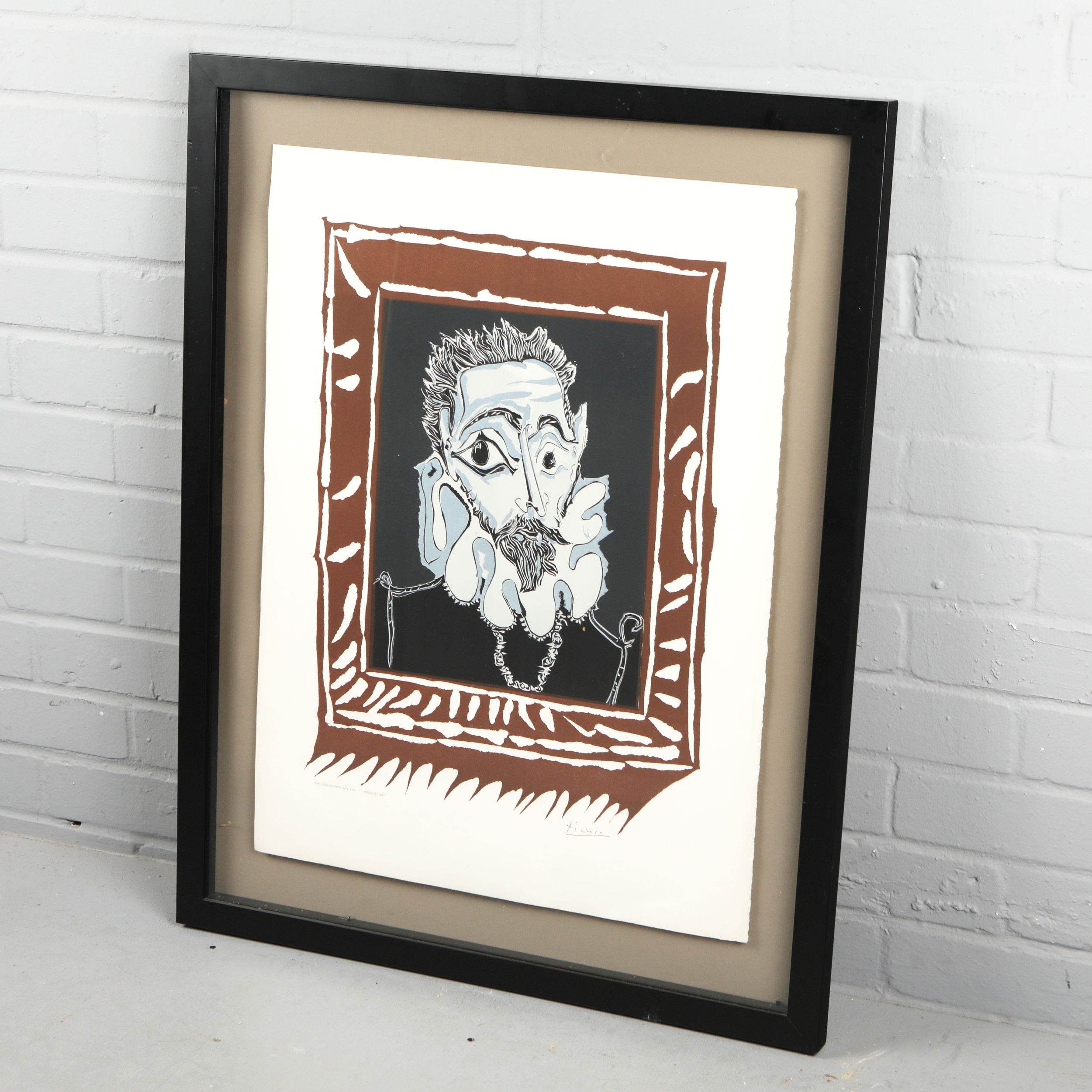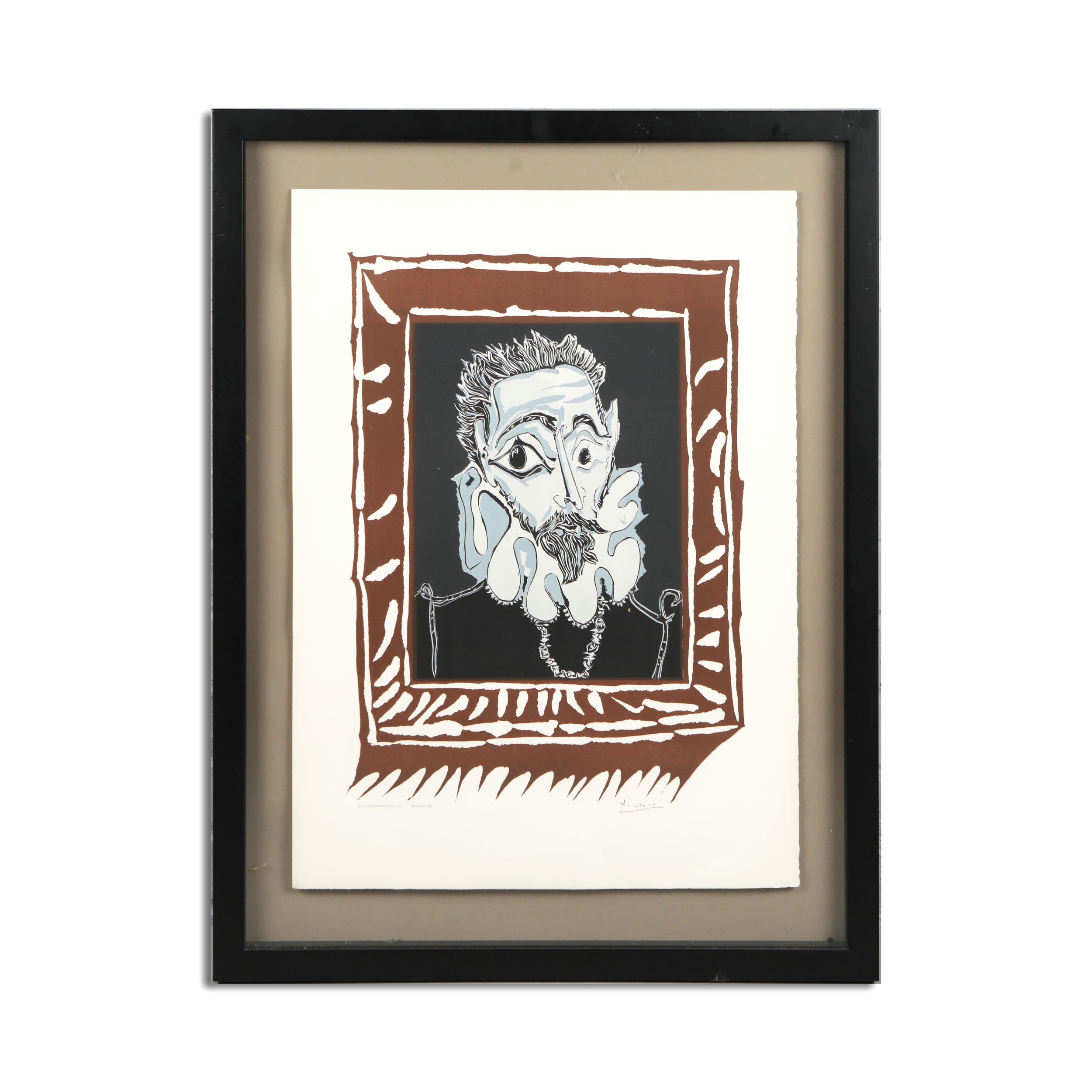 PABLO PICASSO. L'HOMME A LA FRAISE. lithograph printed in colours, on Arches, 1973, after the linocut by Henri Deschamps, printed and published by Mourlot, Paris. Provenance: Bonhams, Picasso Editions, 23rd September 2010, lot 14, 84cm x 66cm, framed.