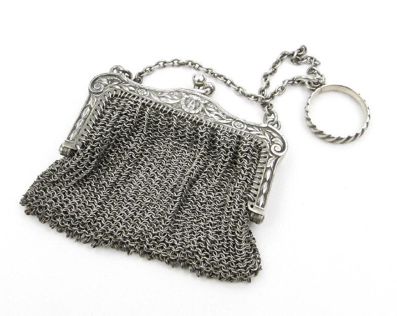 Chain link purse with embossed silver clasp, hallmarked, 5cm in length
