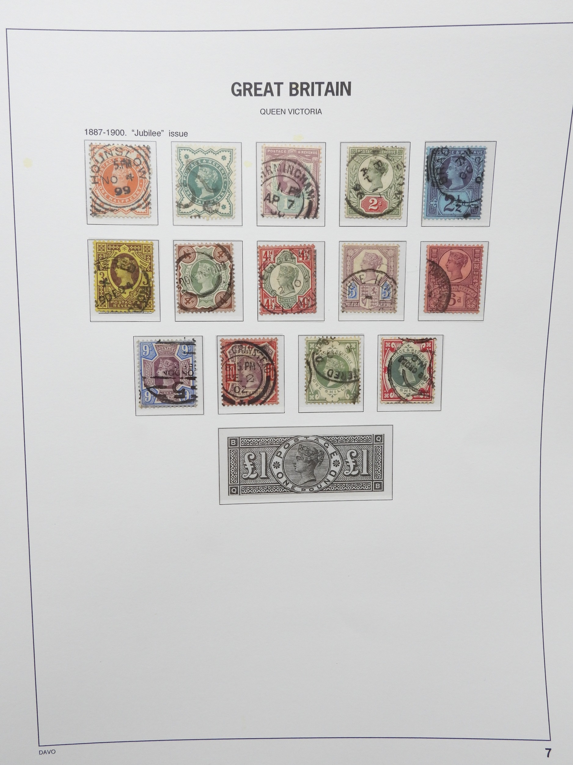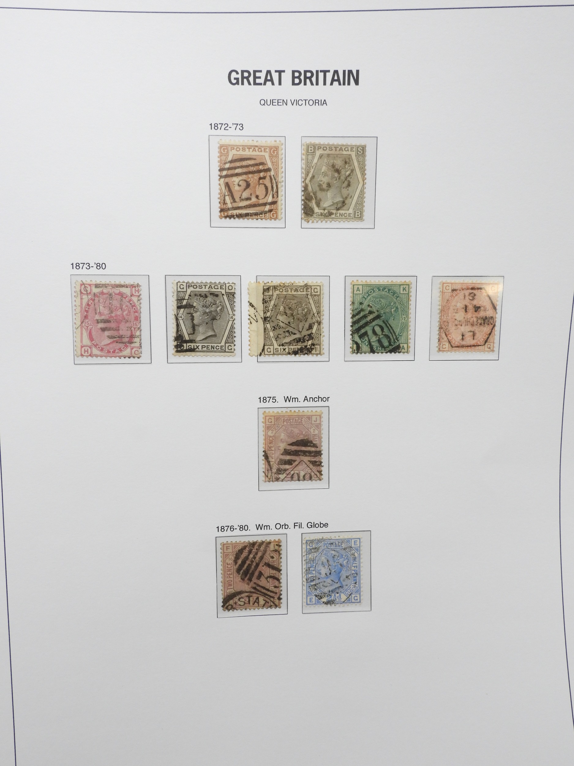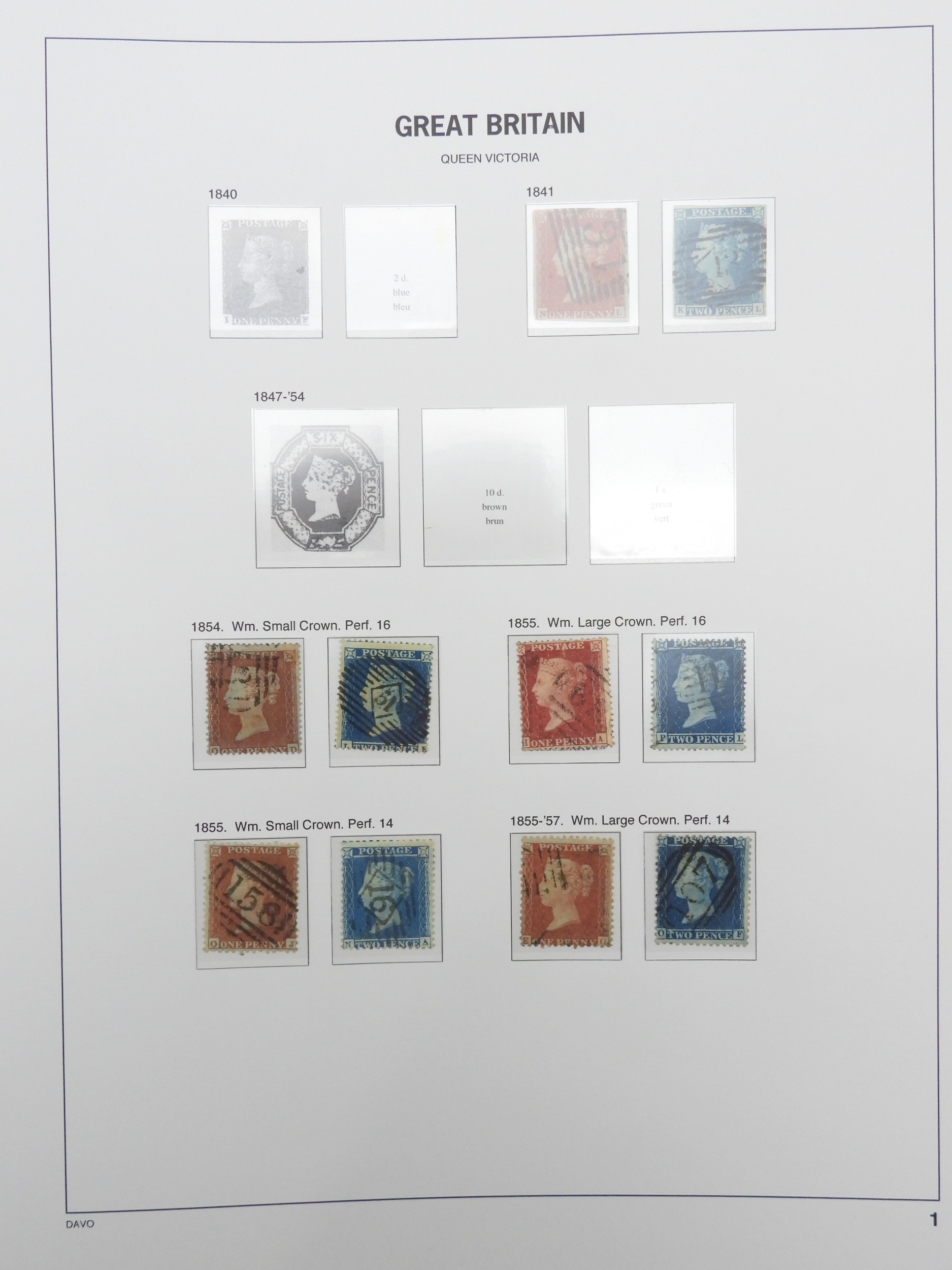 Great Britain Collection of Victorian Line Engraved and Surface printed used stamps from 1841 to1900 on simplified David pages. These have spaces for all stamps by watermark and perforation, but not by shades, paper types or different plate numbers. Included are SG 62, 63 and 66, then, 1857, 1862 and 1865 basic sets. 1867 set to 2/- blue, NO 2/- Brown, then complete up to SG 172, finally the 1897 and 1900 sets all used many CDS used. No values above 2/-. A very good lot with an extremely high cat value.