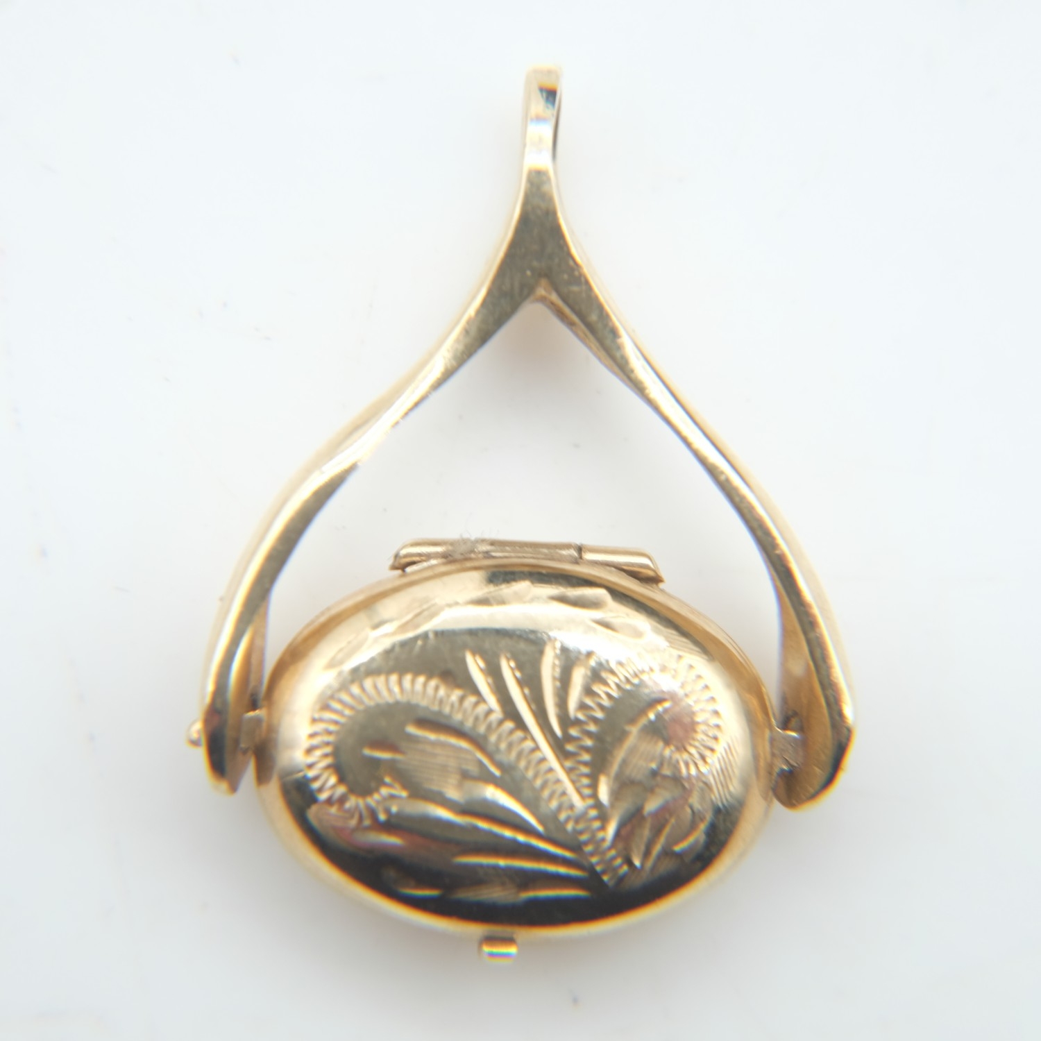 9ct gold spinner with locket, H: 30 mm, 2.4g. UK P&P Group 0 (£7+VAT for the first lot and £1+VAT for subsequent lots)
