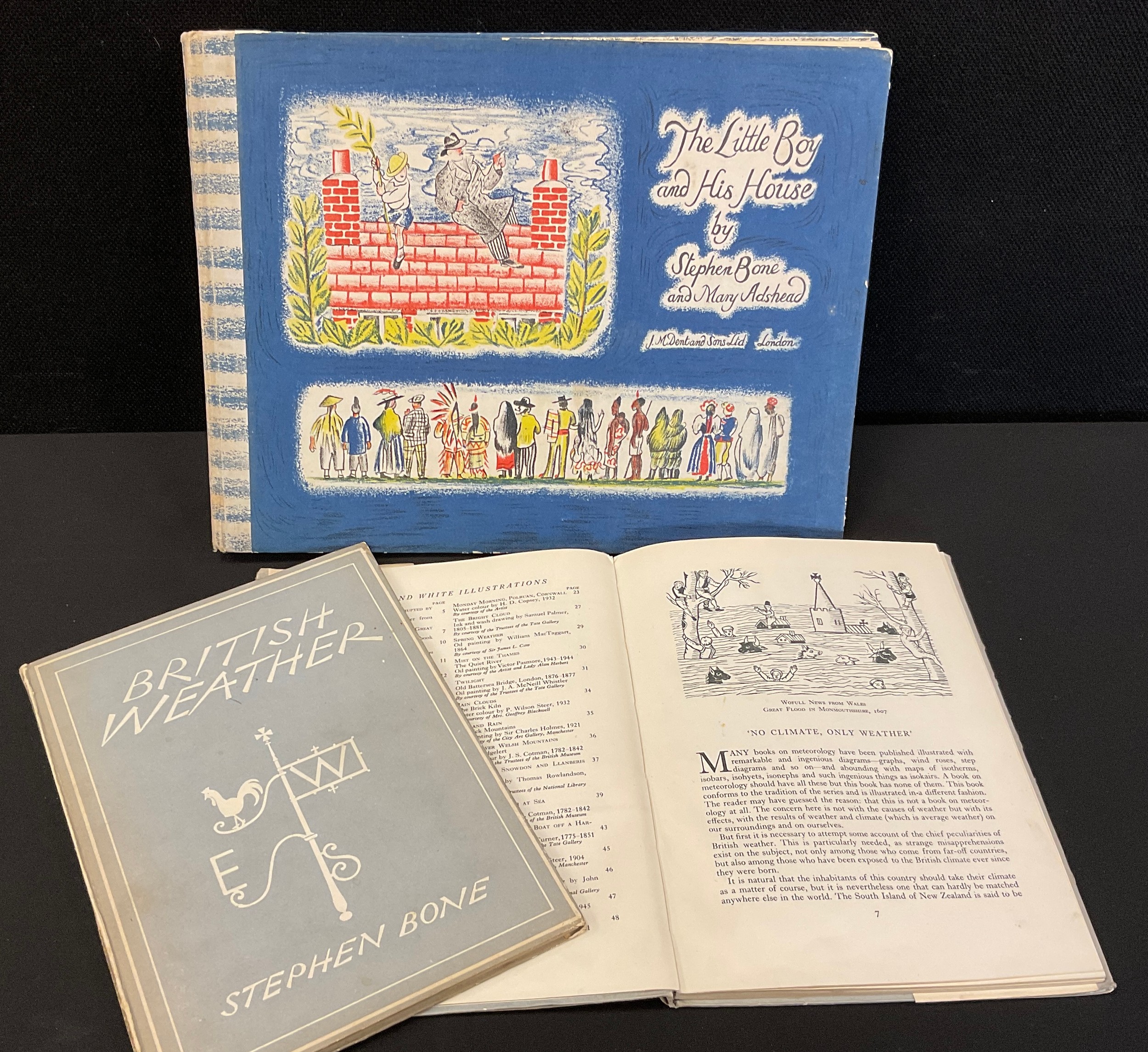 Books - Stephen Bone (1904-1958) and Mary Adshead (1904-199), The Little Boy and His House, J.M. Dent & Sons Ltd., London, 1936; others, British Weather, illustrations after John Constable, Paul Nash, Eric Ravilious, L.S. Lowry, etc., Collins, London, 1946, one signed and dated 1946 by the author (3)