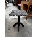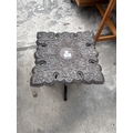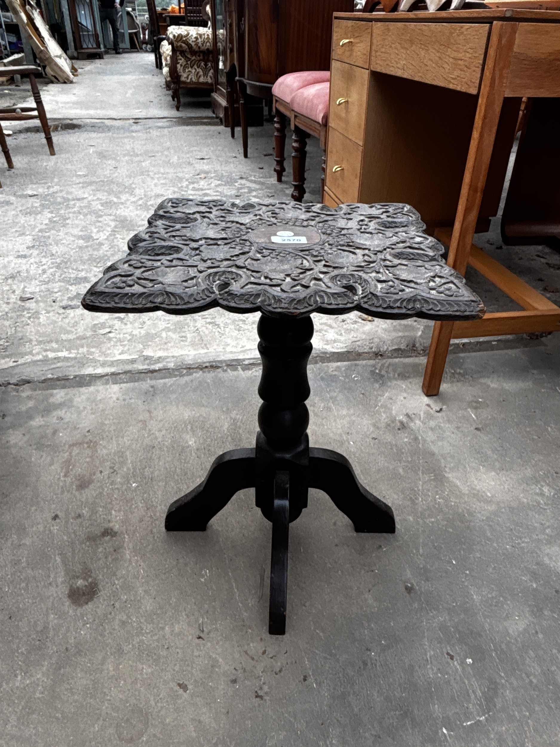 A CARVED HARDWOOD OCCASIONAL TABLE ON PEDESTAL BASE, 14" SQUARE
