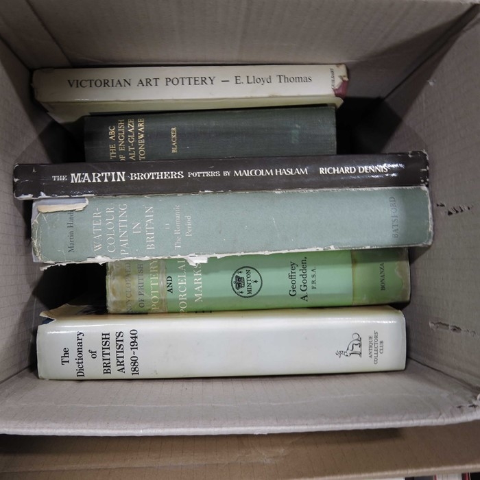 Art and antique reference books, including The Martin Brothers Potters by Malcolm Haslam and Godden's Pottery and Porcelain Marks