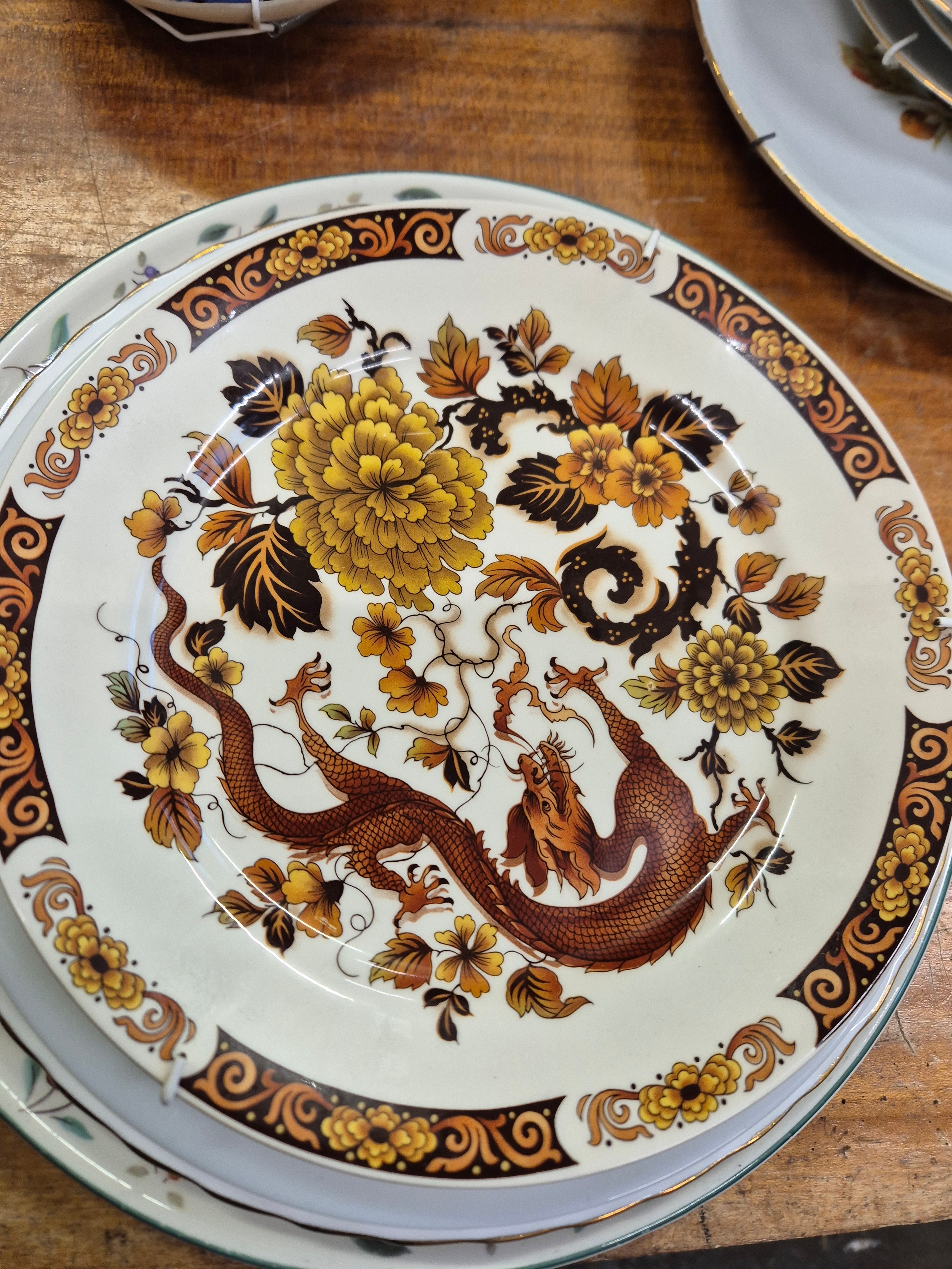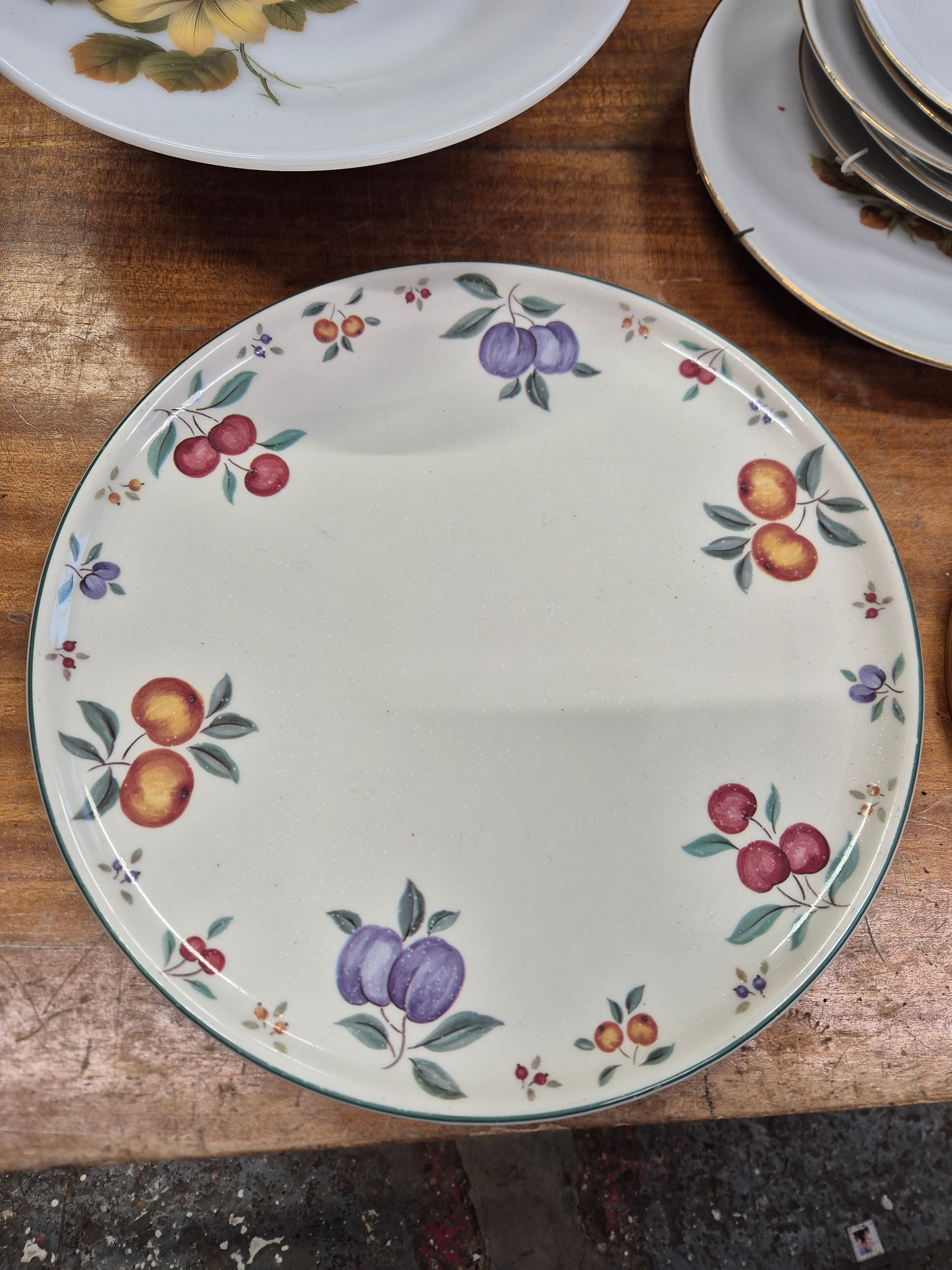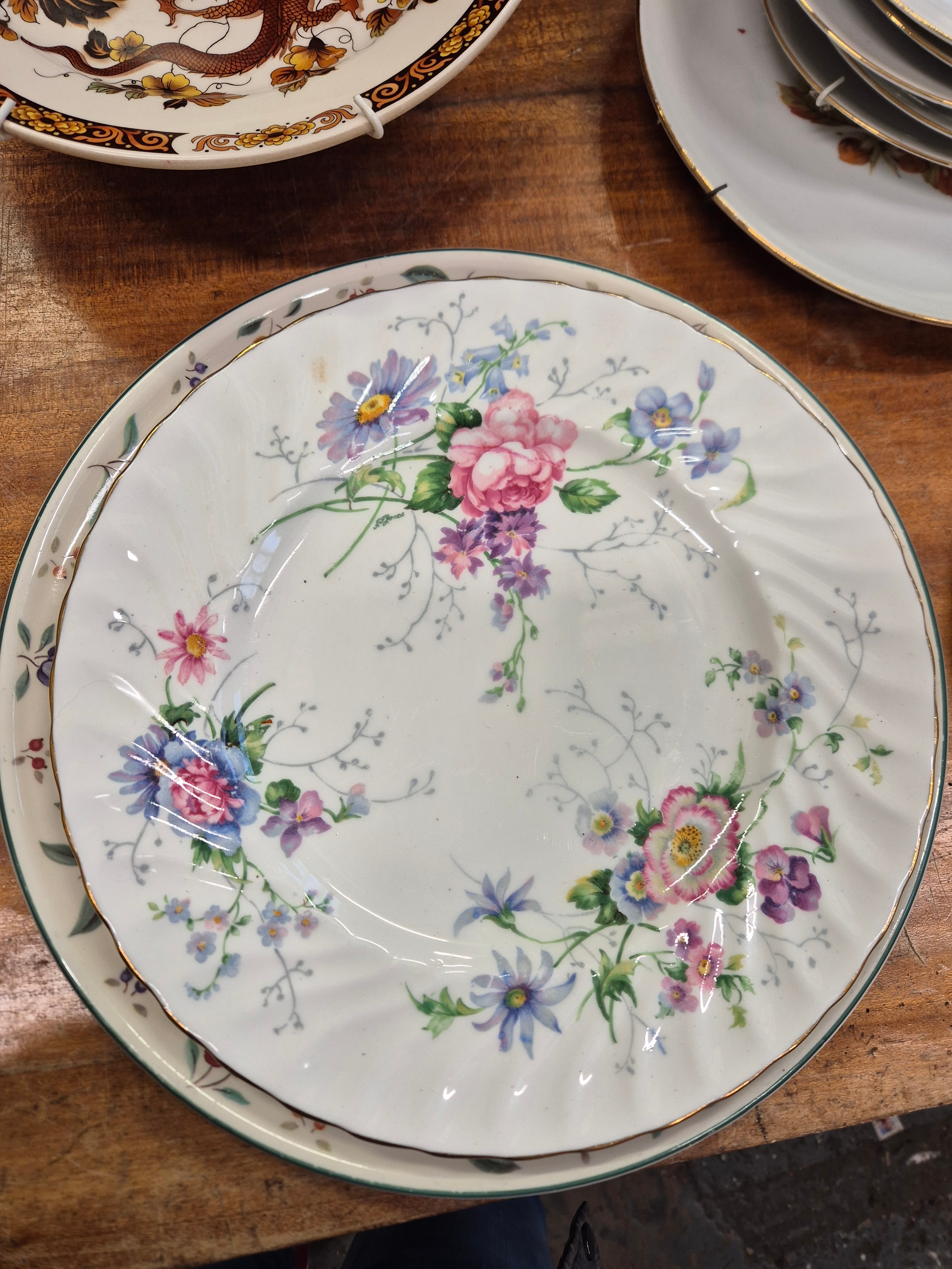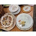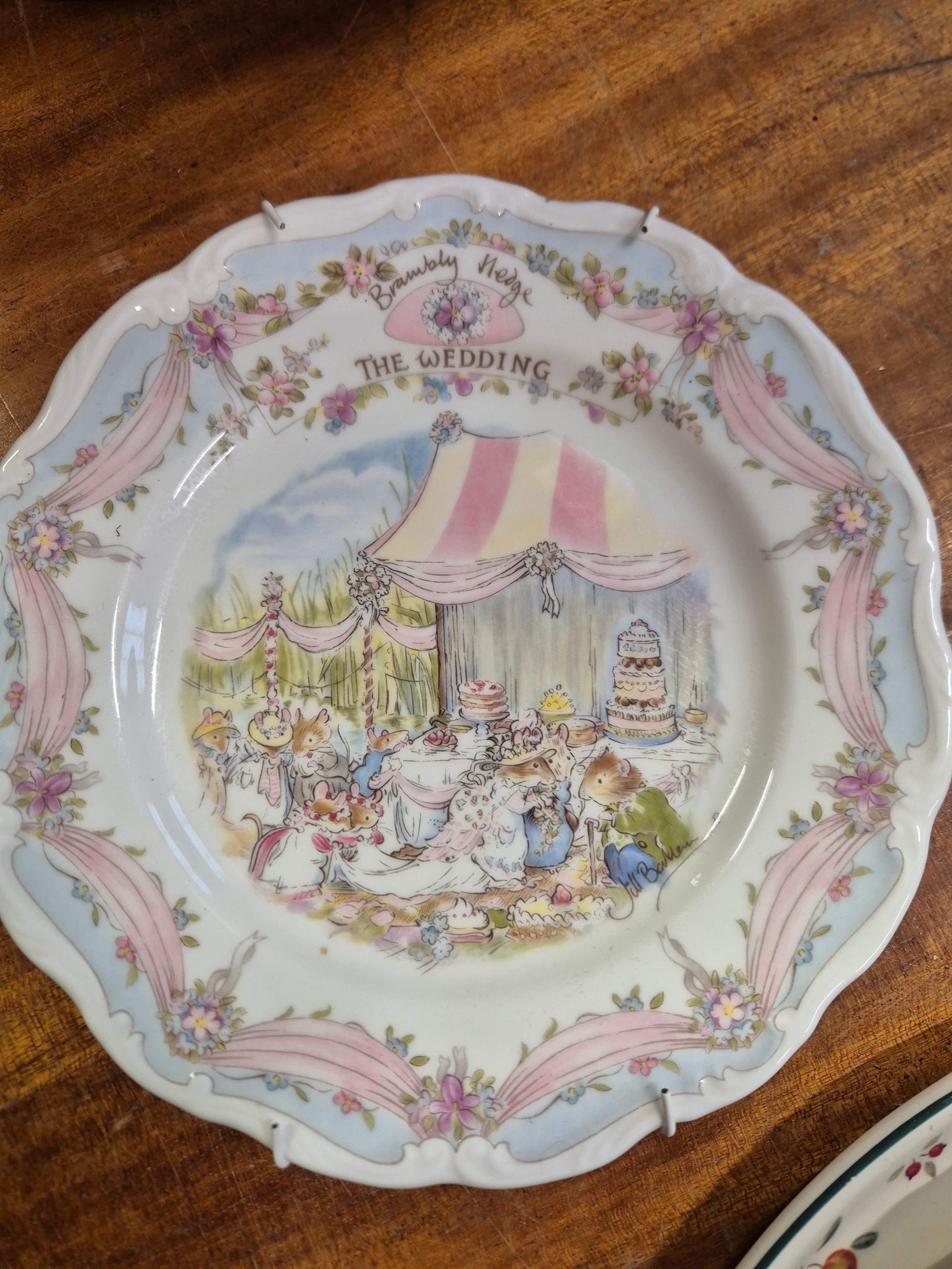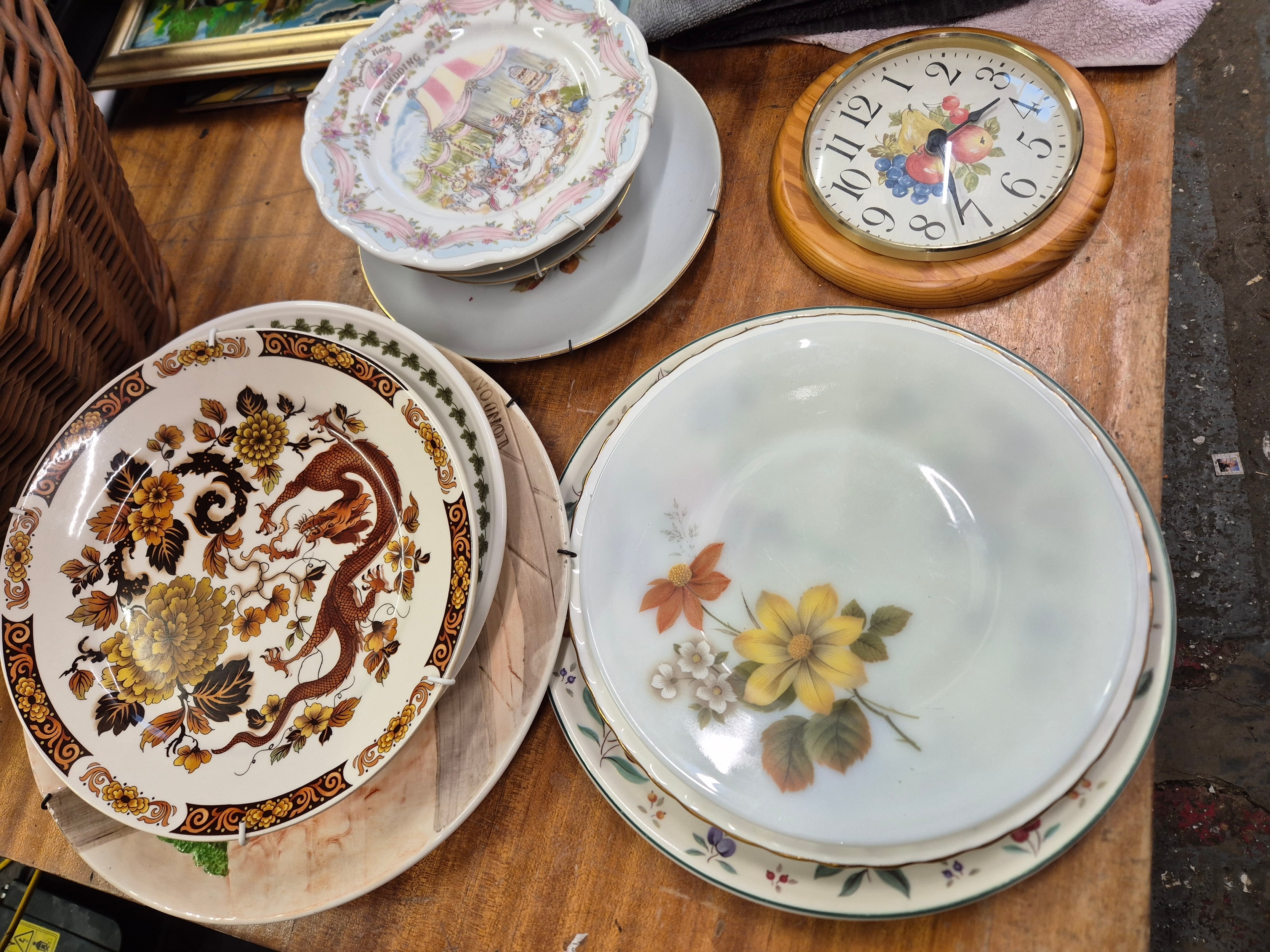 Selection of ceramic plates to include Grindley, blue delft, Royal Doulton Brambly Hedge, Myott Meakin etc plus a Portmeirion wall clock and one other