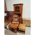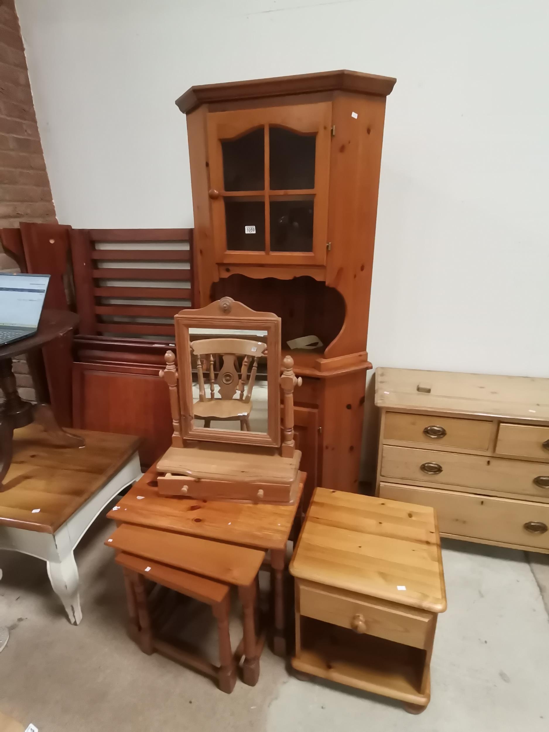 Pine corner display unit W81cm x H85cm, pine mirror and pine nest of tables