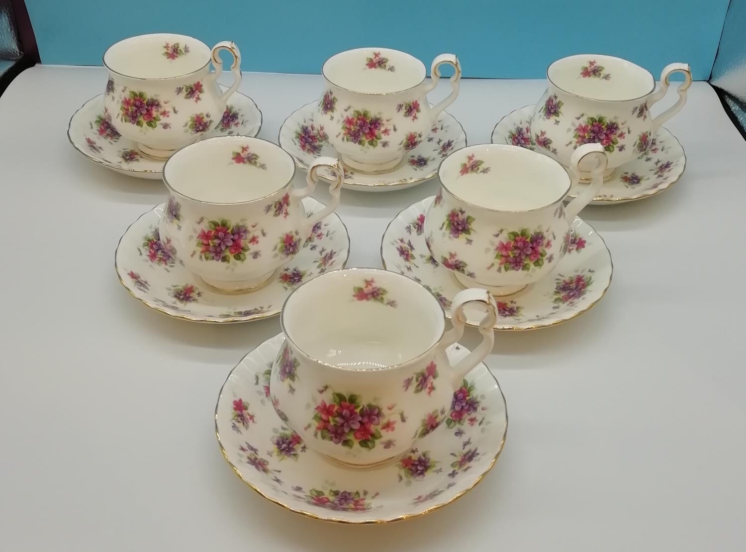 Royal Albert Cups and Saucers (6) in the 'Violetta' Pattern. 2nds Quality.