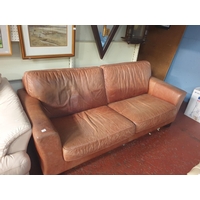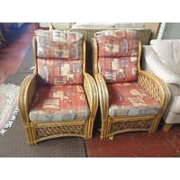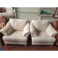 Pair of Cream Leather Effect Arm Chairs with Oak Feet - approx 1.3m wide.