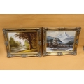 TWO GILT FRAMED OIL ON CANVASES DEPICTING DUCKS IN FLIGHT SIGNED W. LOVELL AND A SNOWY MOUNTAINOUS SCENE (UNSIGNED) - OVERALL SIZE 64 X 54 CM