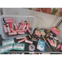 Large selection of brand new lip based toiletries including amongst others Vaseline and Nivea together with Elvive Leave In Coloured hair protector, Imperial Leather soap and a pretty floral cosmetics bag