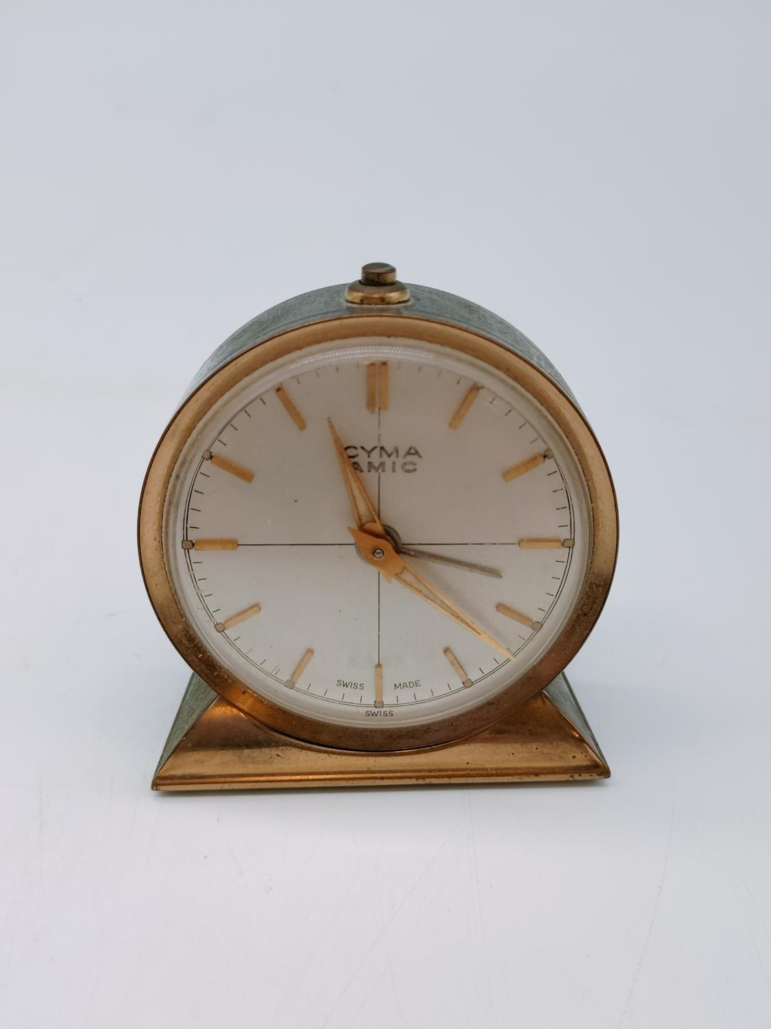 Vintage Swiss Cyma Amic Brass Clock W/O. 6cm x 6cm.