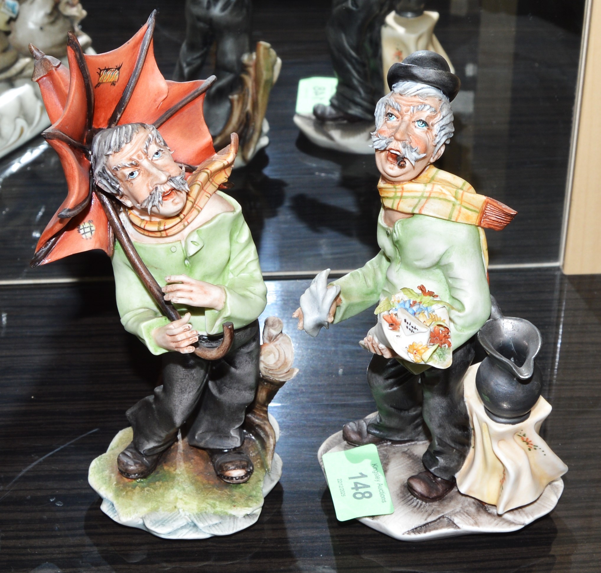 Two Capo-di-Monte Figures - 8" High (One with Umbrella and One with Flowers)Not for postage- collection only