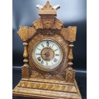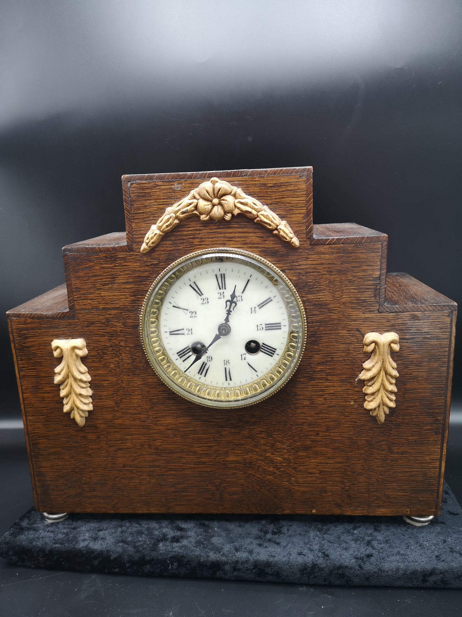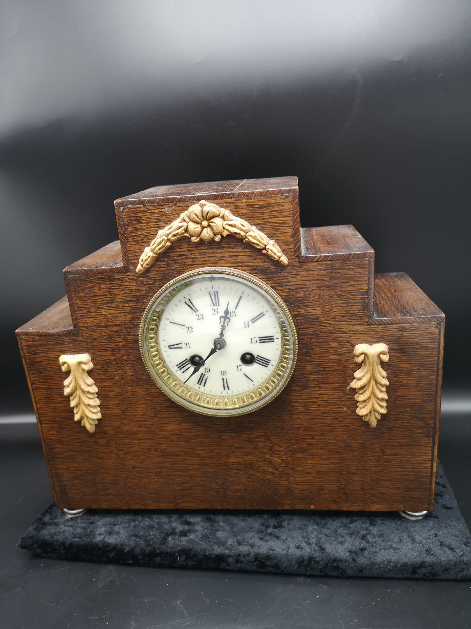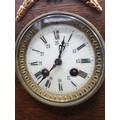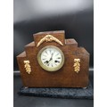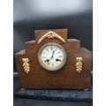 1900s art deco mantle clock with enamel face with clock and pendulum.