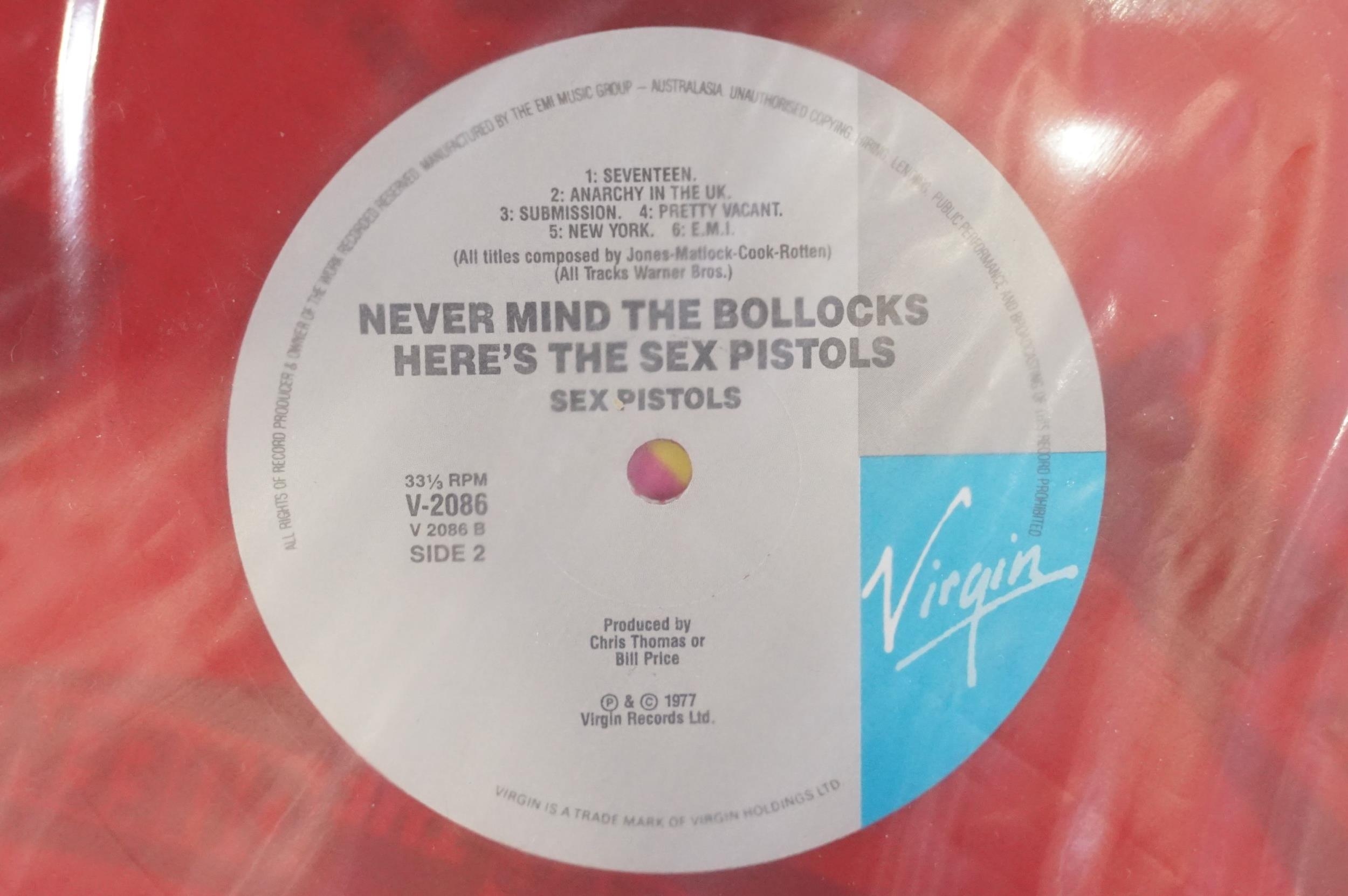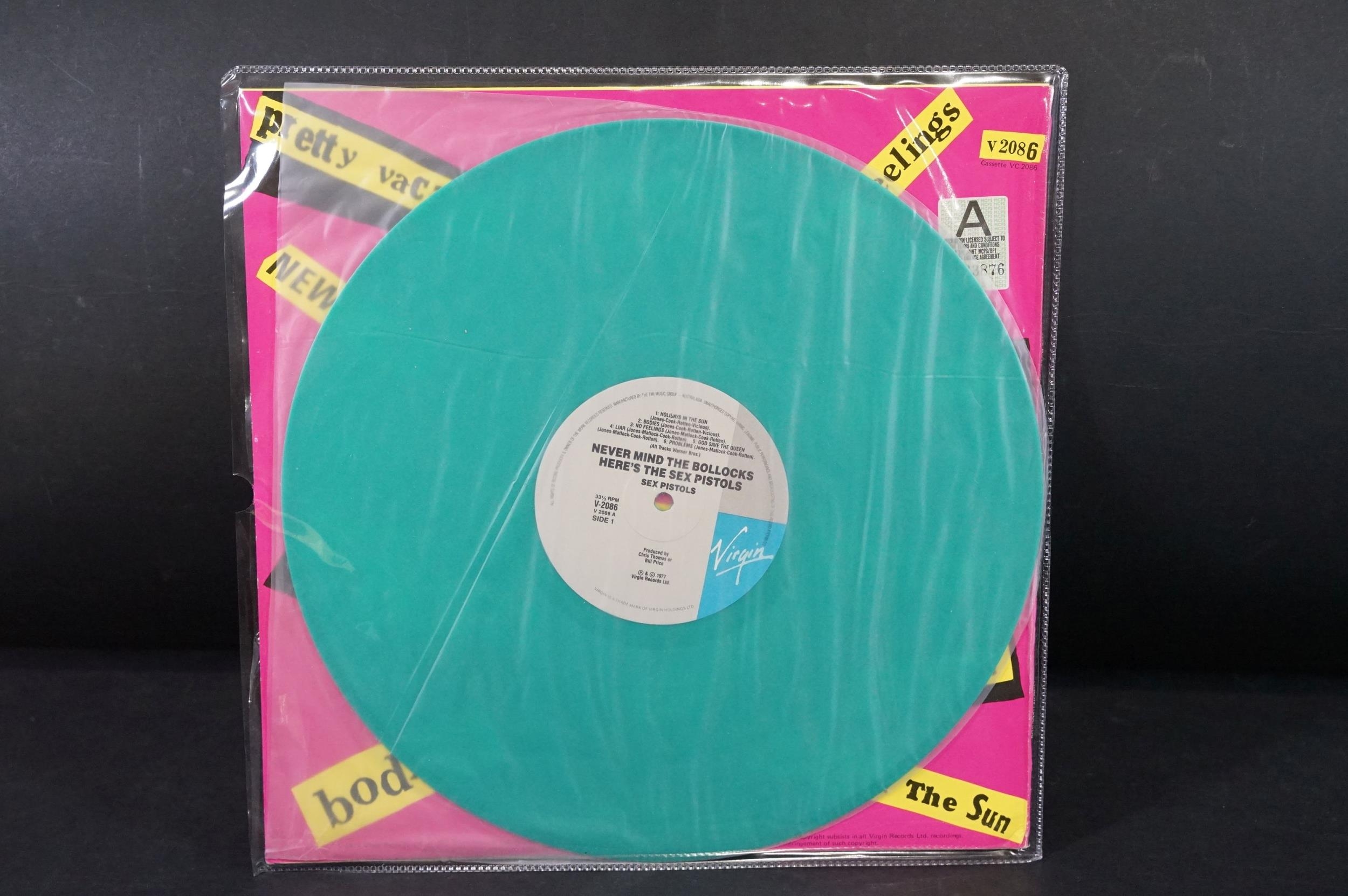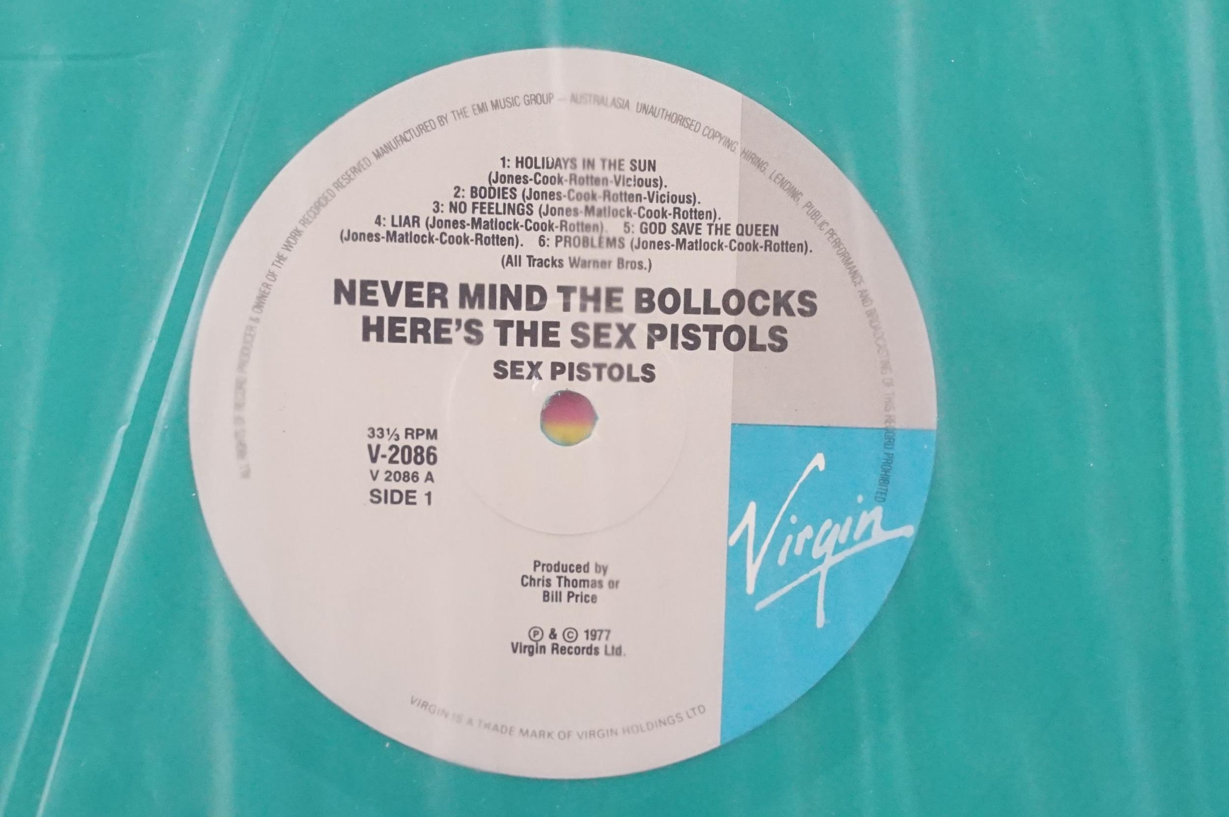 Vinyl - 2 Sex Pistols limited edition 1990 Australasia coloured vinyl re-issue LP’s of: Never Mind The Bo****ks Here's The Sex Pistols, Virgin – V-2086, green and red vinyl. EX+
