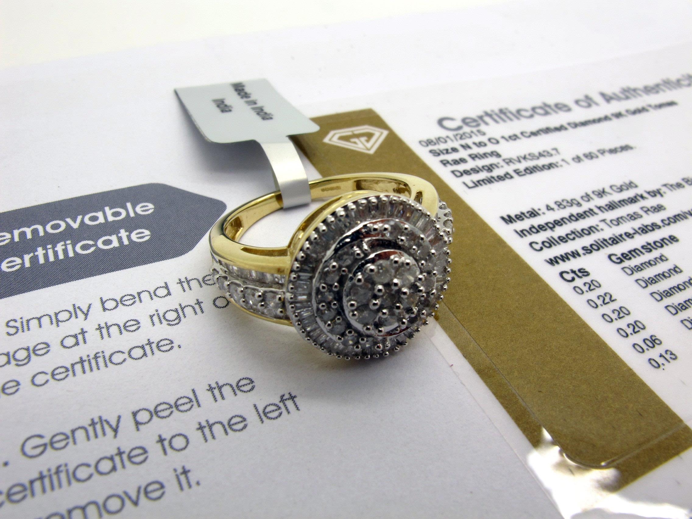 The Genuine Gemstone Company Ltd; A 9ct Gold Tomas Rae 1ct Diamond Cluster Ring, allover mixed cut claw set stones, between wide inset shoulders (finger size O) (5 grams).