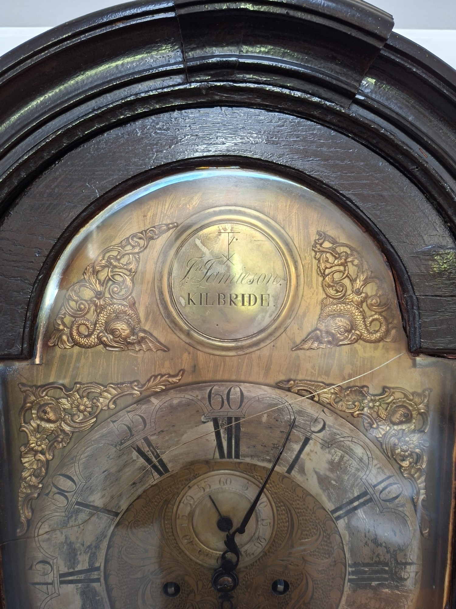 Grandfather clock J Jamieson Kilbride brass faced