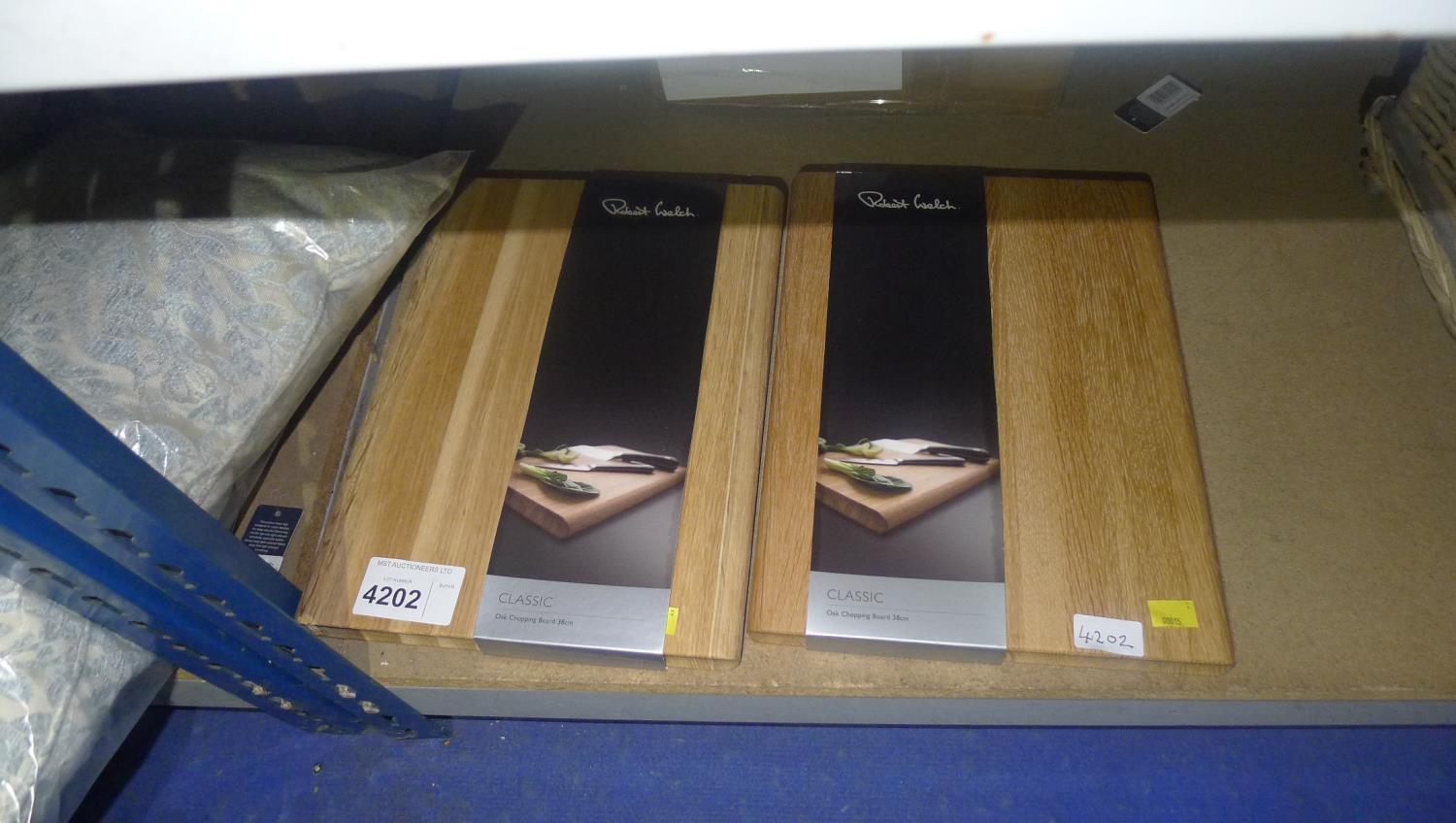 2 Robert Welch classic oak chopping boards each approx 38cm x 28cm