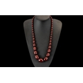 Toffee Amber Graduated Bead Necklace, an amber necklace of the warm, dark orange/red colour 'toffee' amber, graduating from a bolt ring clasp to the large central bead, 1.2 inches (2.9cms) across; overall length 27 inches (74 cms)
