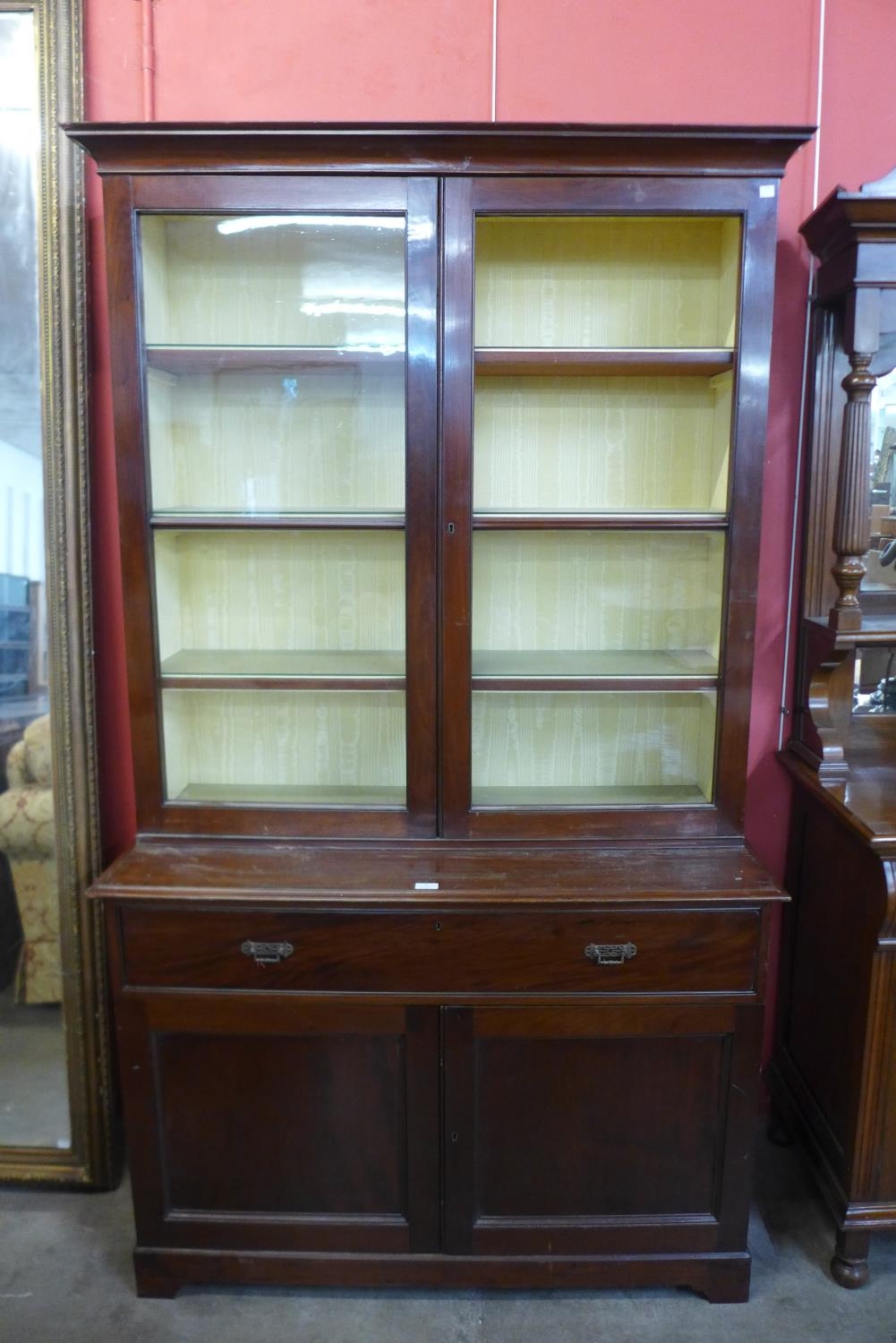 A Victorian mahogany bookcase (lacking one glass pane to door)