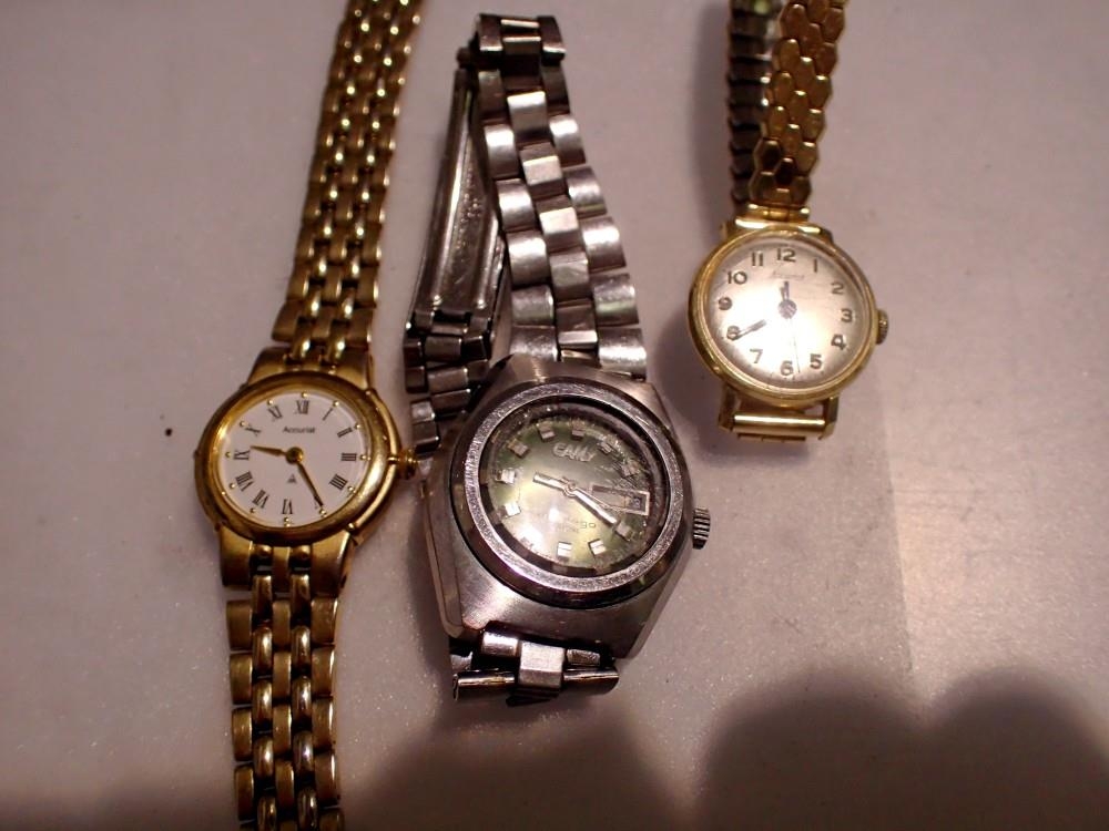 Three ladies wristwatches, two Accurist and a Camy. UK P&P Group 1 (£16+VAT for the first lot and £2+VAT for subsequent lots)
