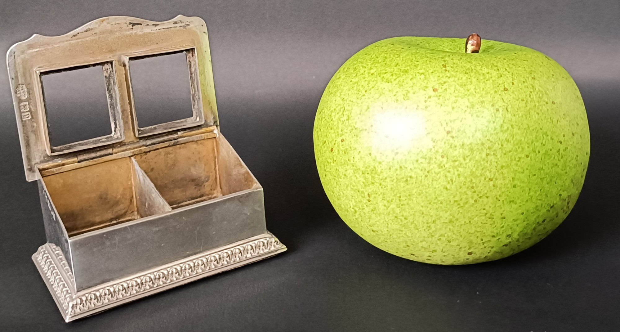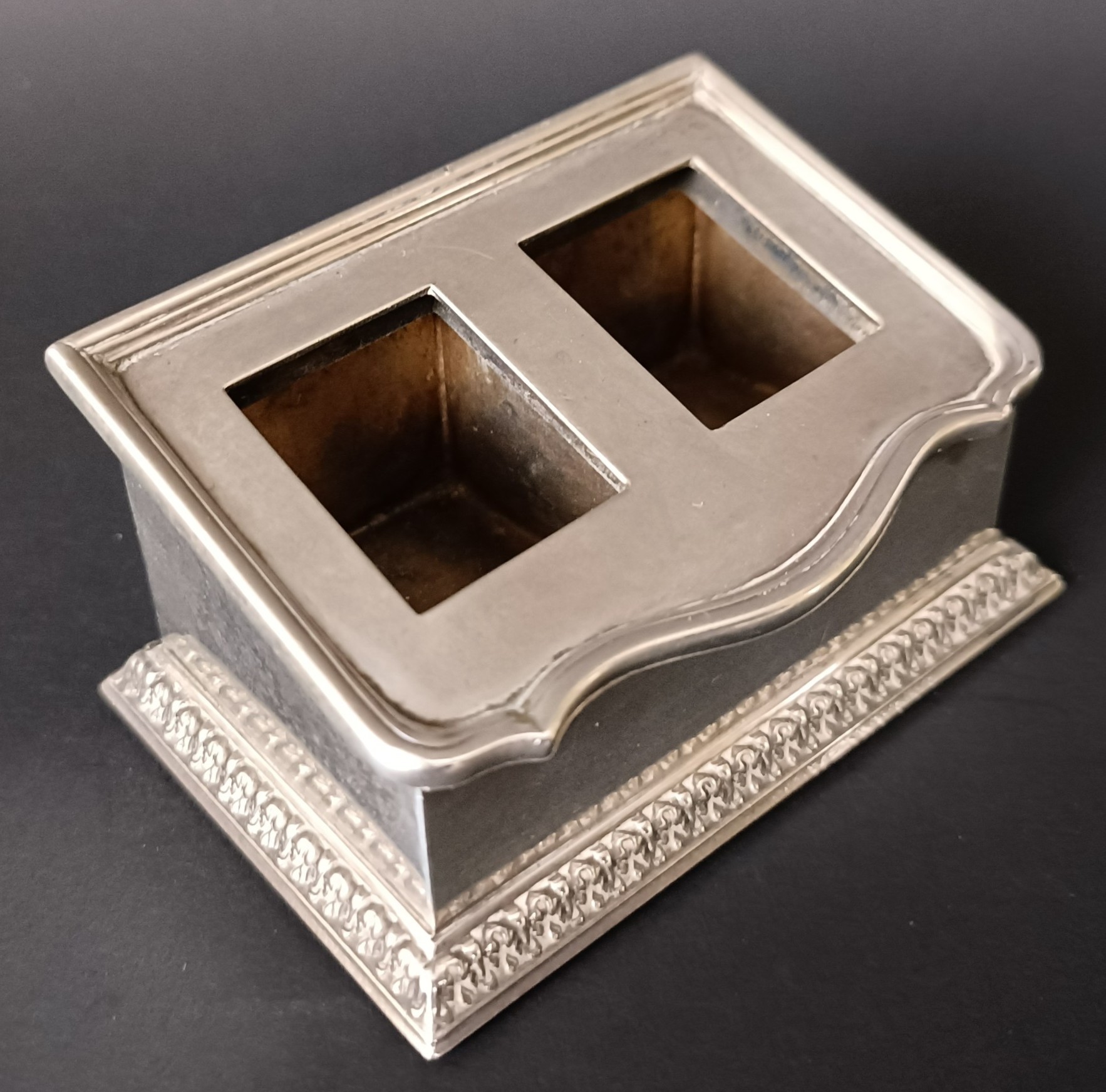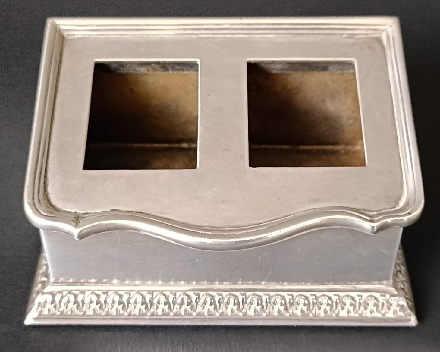 A George V silver stamp box, London 1910, base filled, 7 cm, wide