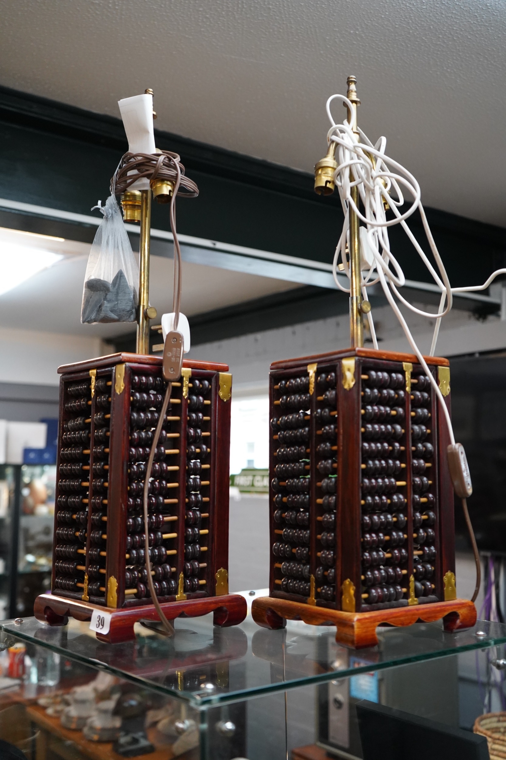 Pair of Vintage Chinese Hardwood Abacus table lamps. 67cm in Height