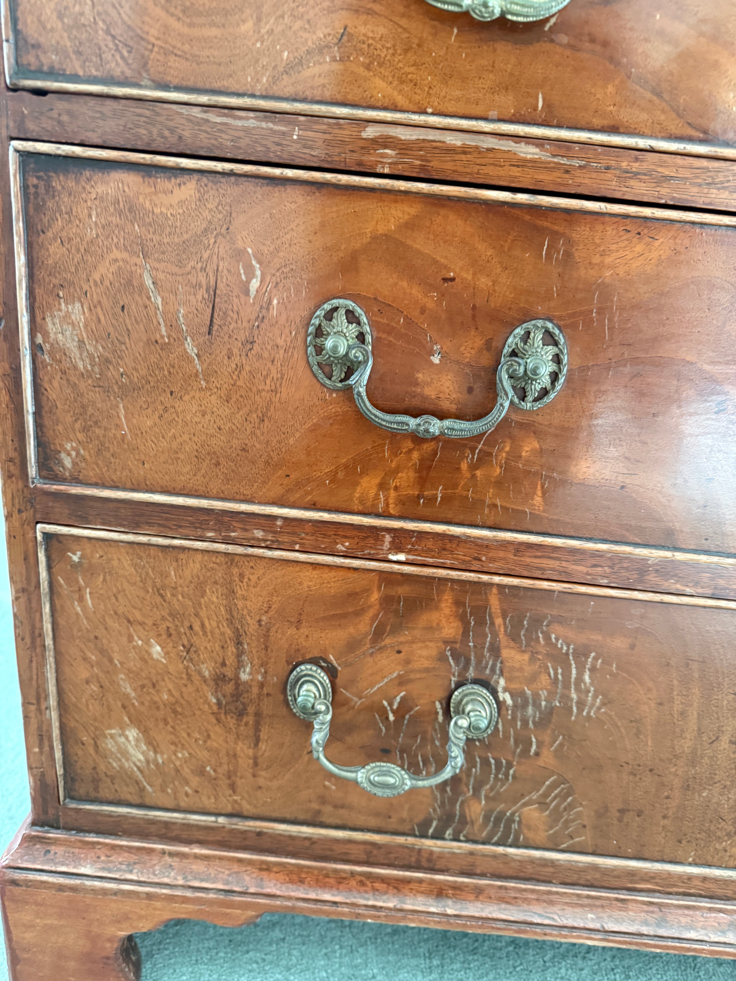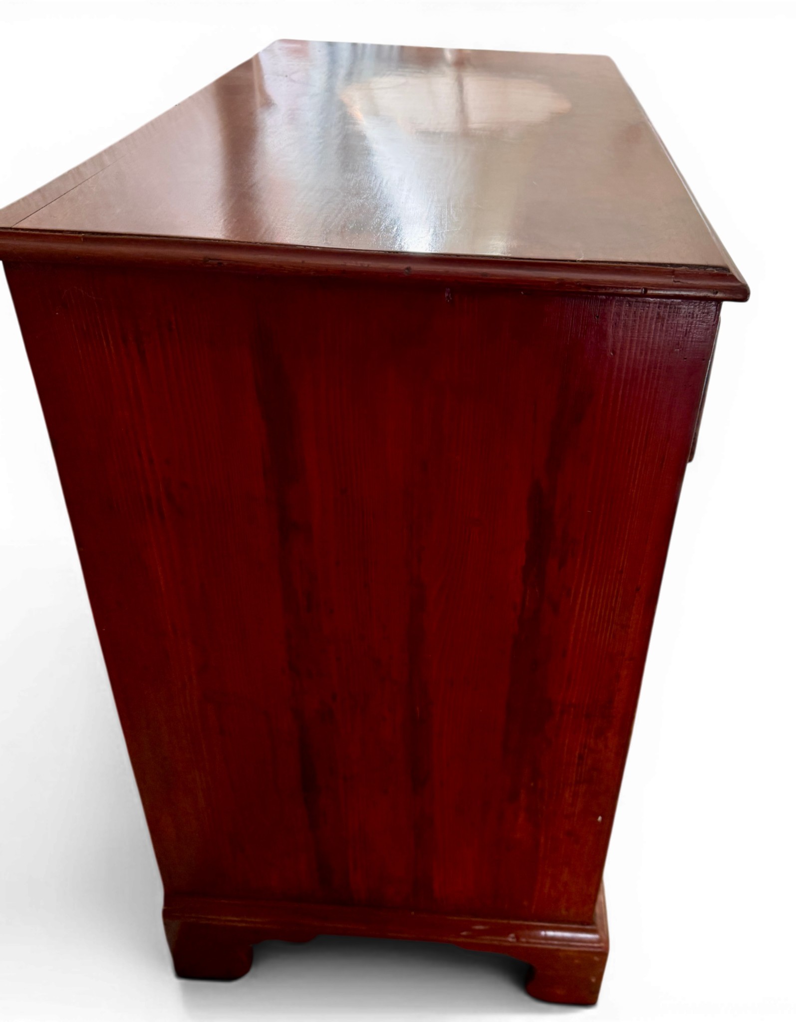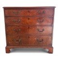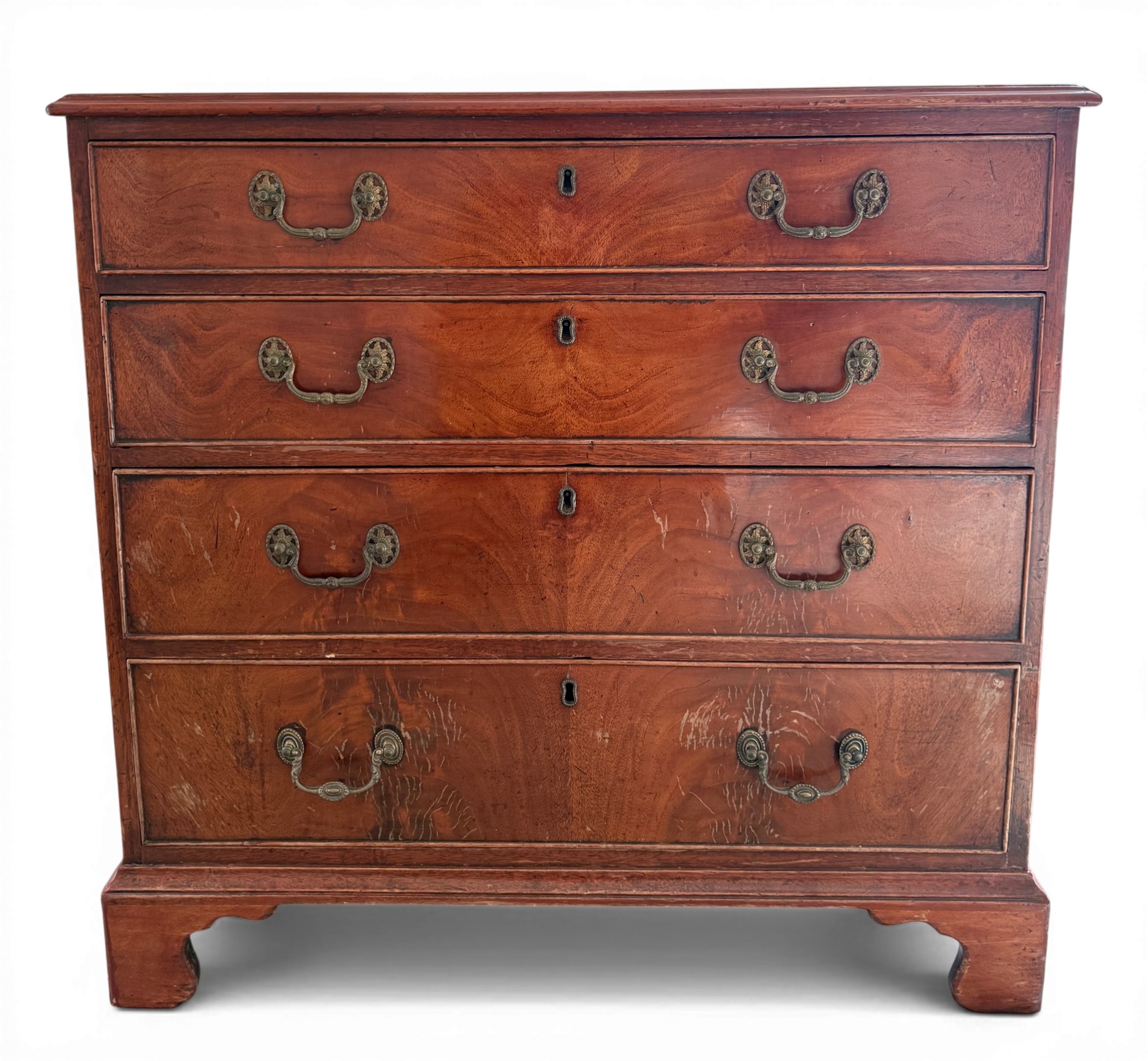 A 19thC mahogany four drawer chest on bracket feet with scrumble ends. 84 w x 46 d x 82cm h.