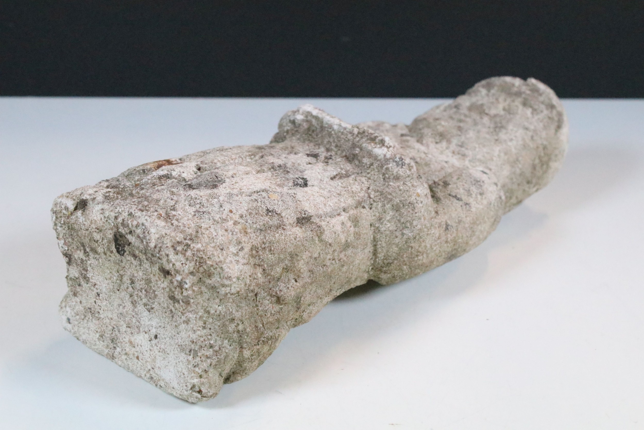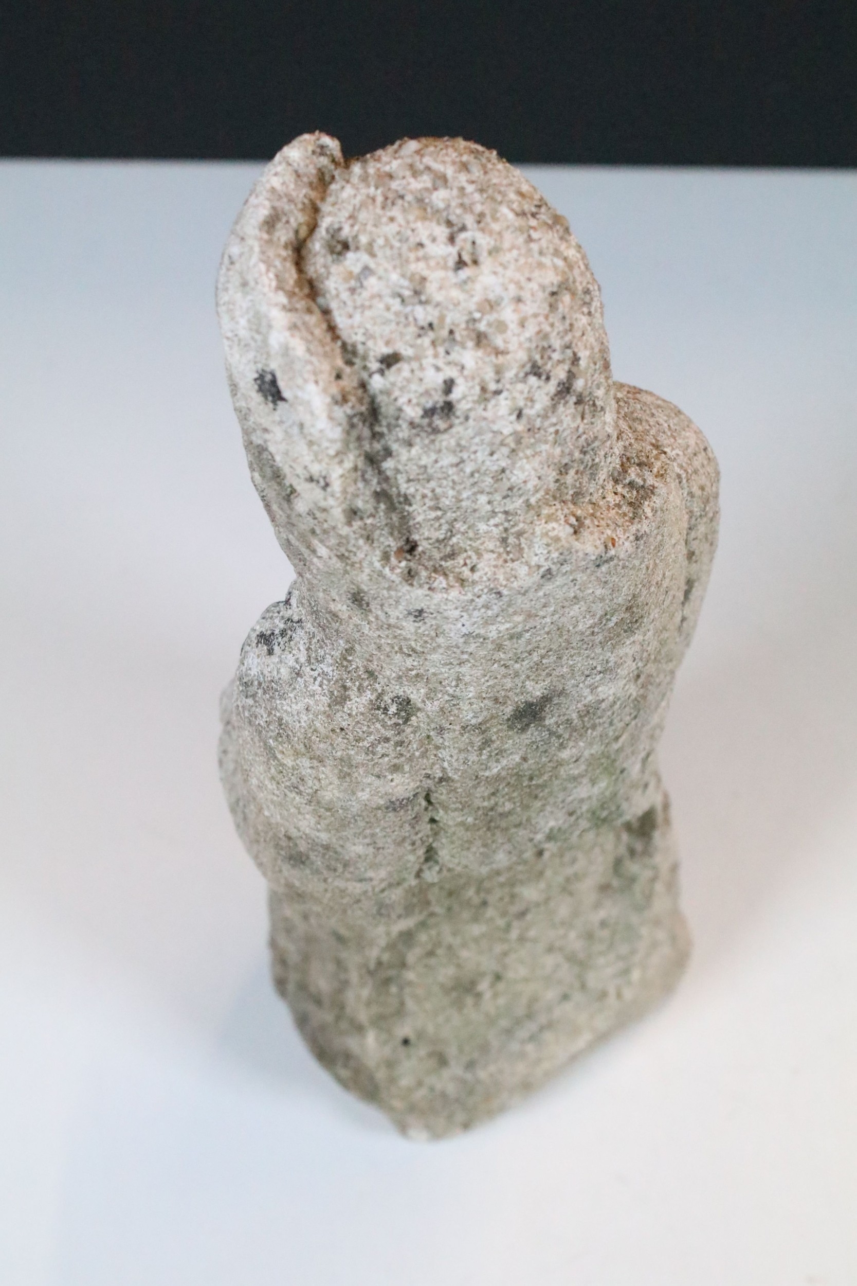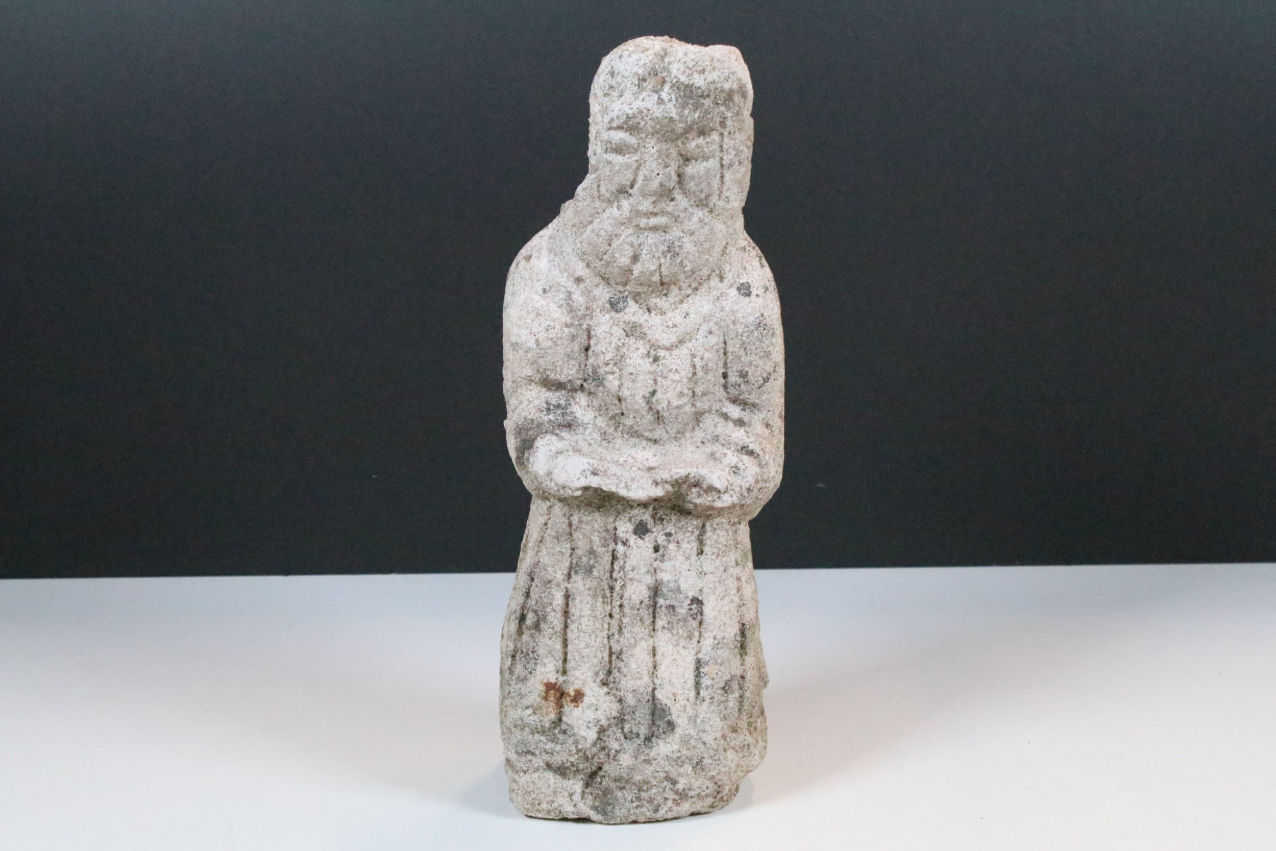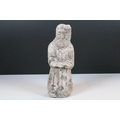 Stone carving of a religious figure, modelled with hands held outwards, H 30cm