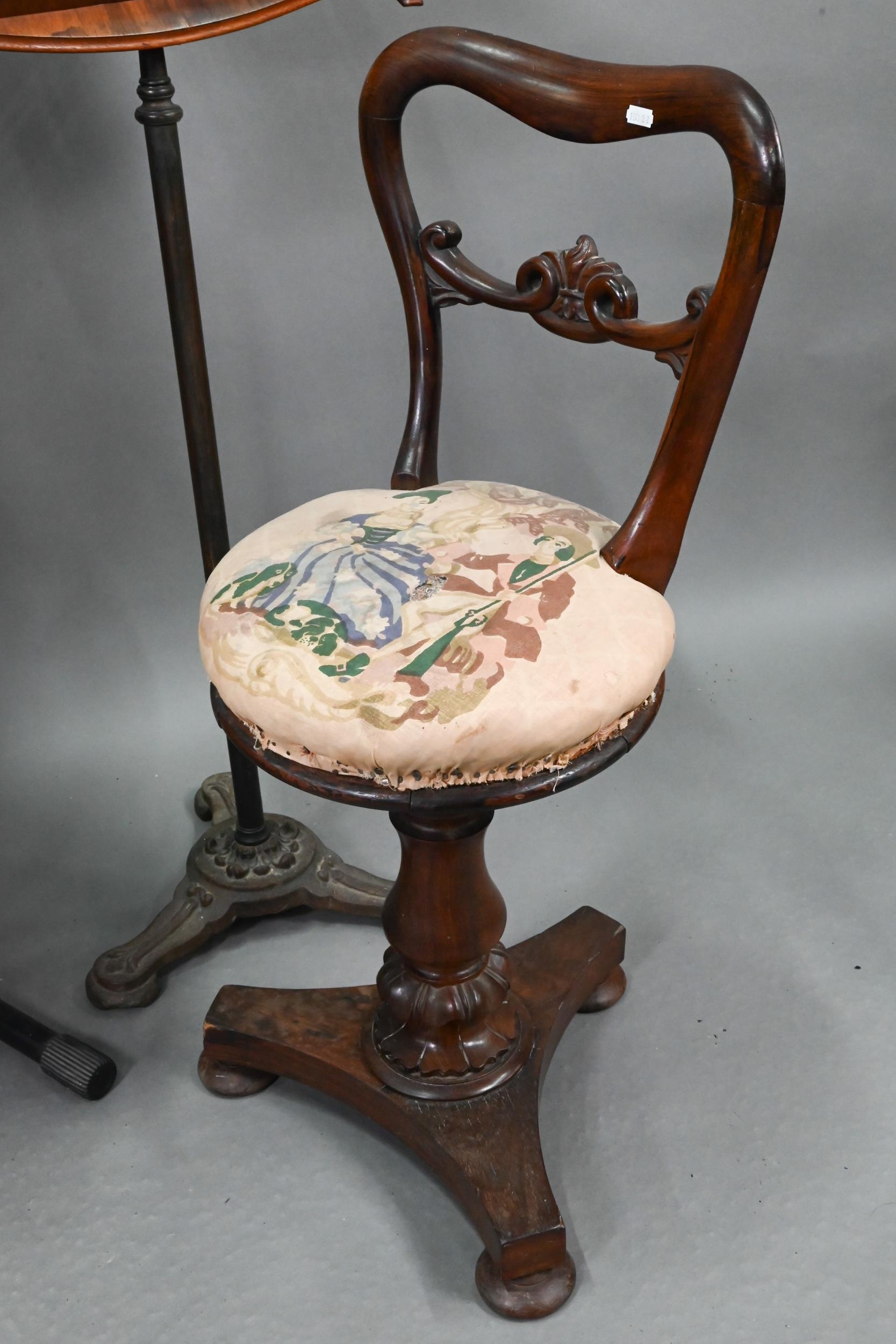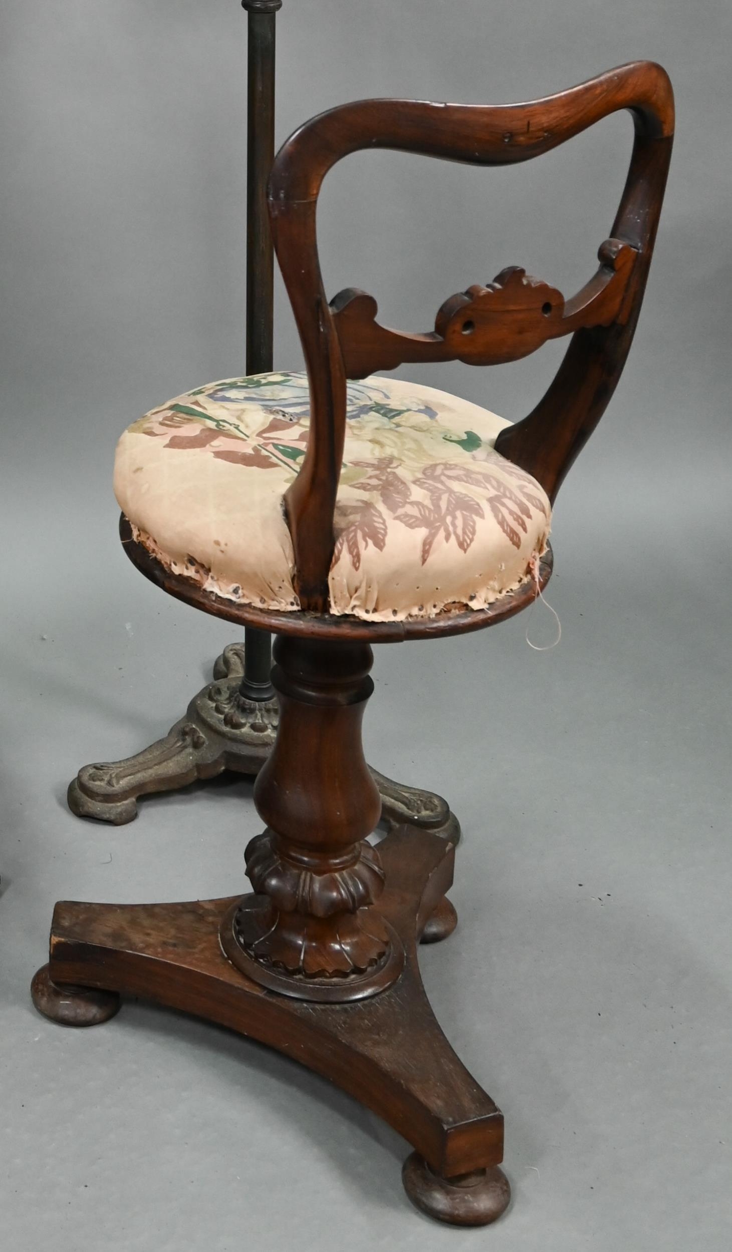 A Victorian Rosewood revolving cello/music chair, raised on a tri-form platform base