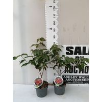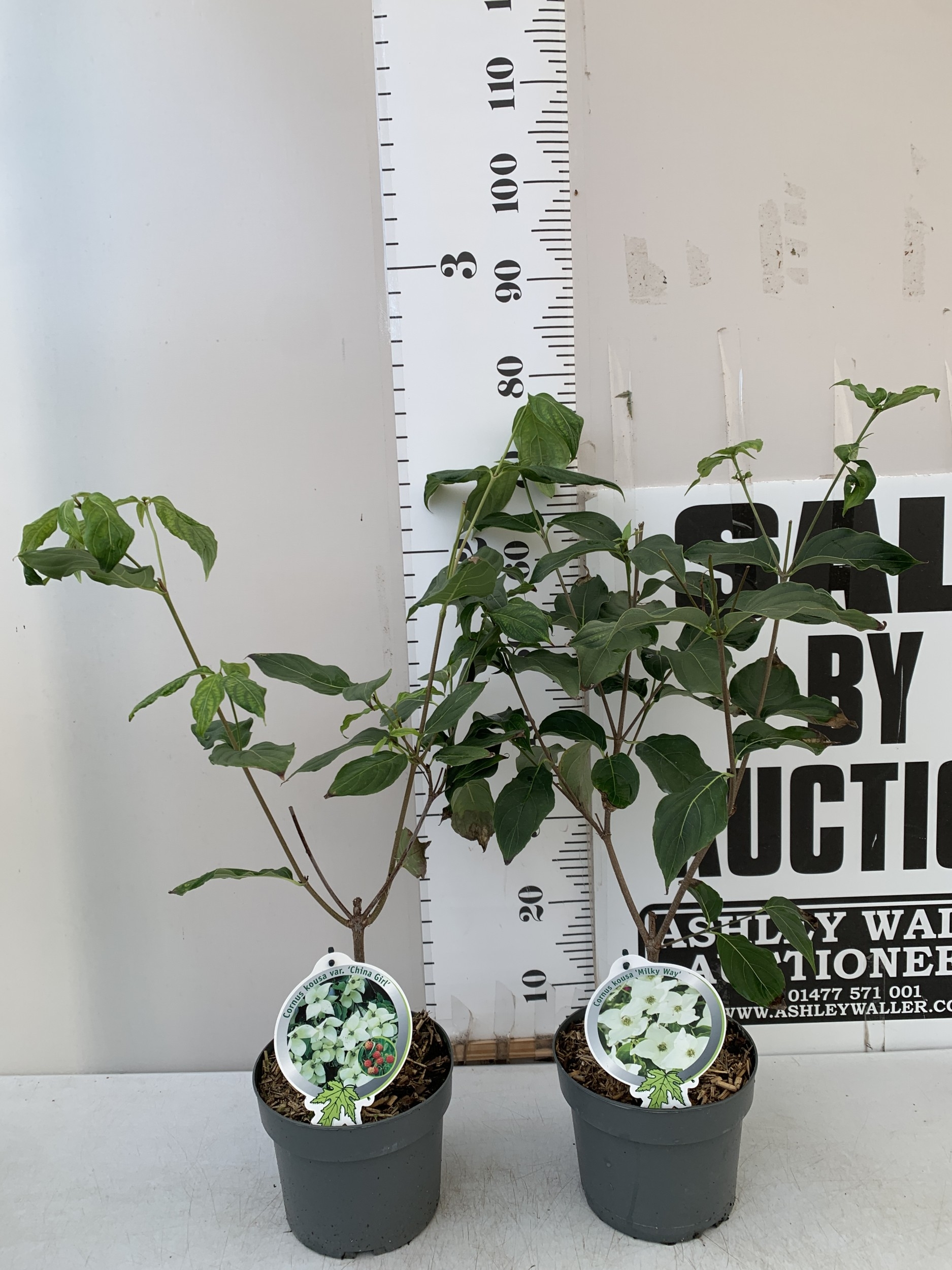 TWO MIXED CORNUS KOUSA ONE WHITE 'CHINA GIRL' AND ONE WHITE 'MILKY WAY'. DECIDUOUS SHRUBS WITH OVATE LEAVES TURNING PURPLE AND DEEP RED IN AUTUMN. FLOWERHEADS HAVE SMALL FLOWERS IN DENSE CLUSTERS. APPROX 80CM TALL, IN 3 LTR POTS. TO BE SOLD FOR THE PAIR