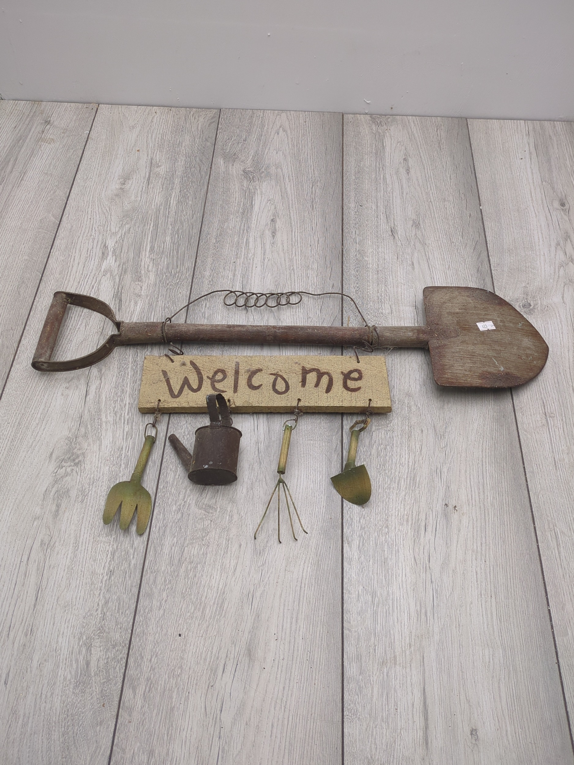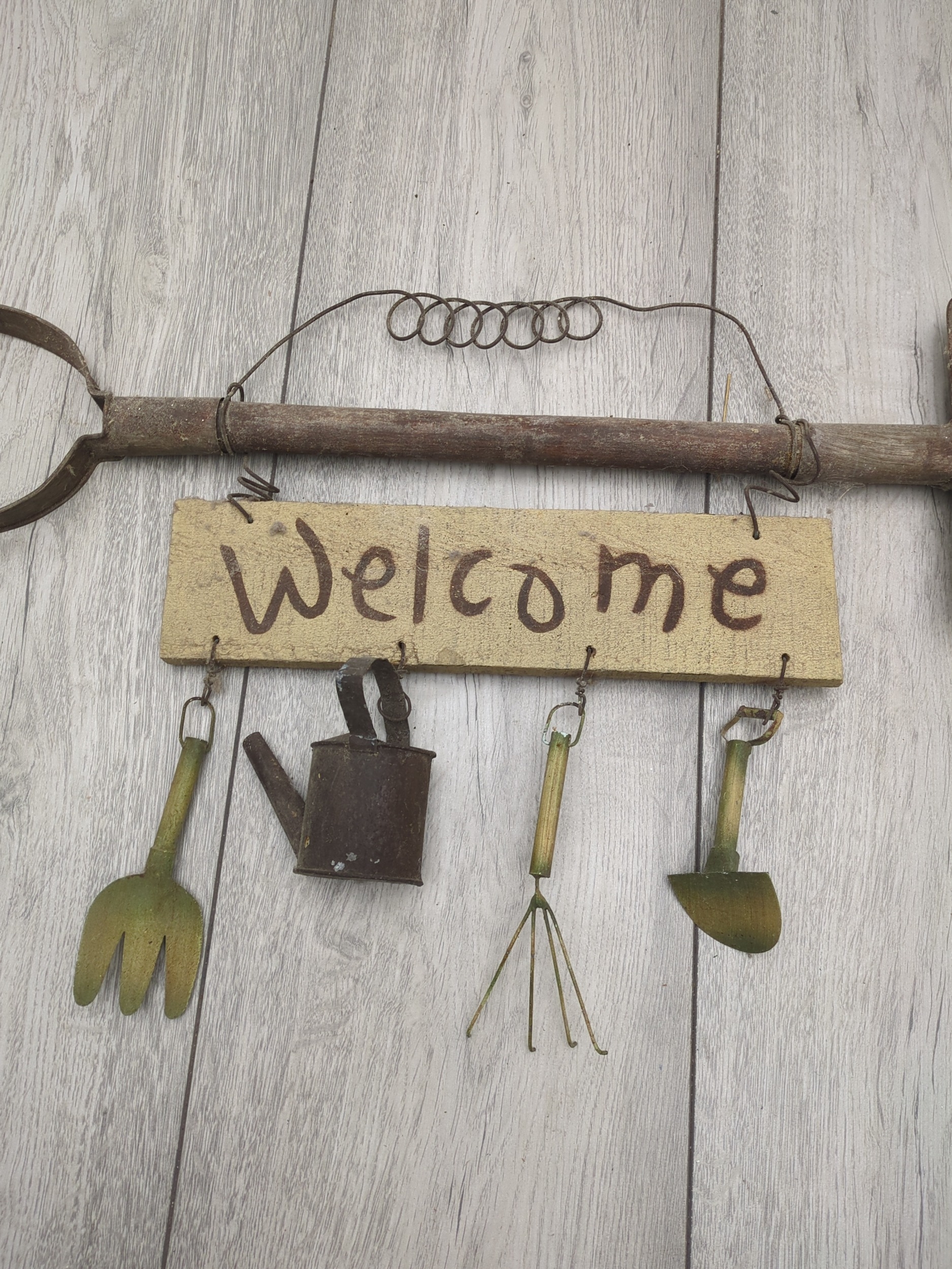 Garden Welcome Sign with Tool Decorations