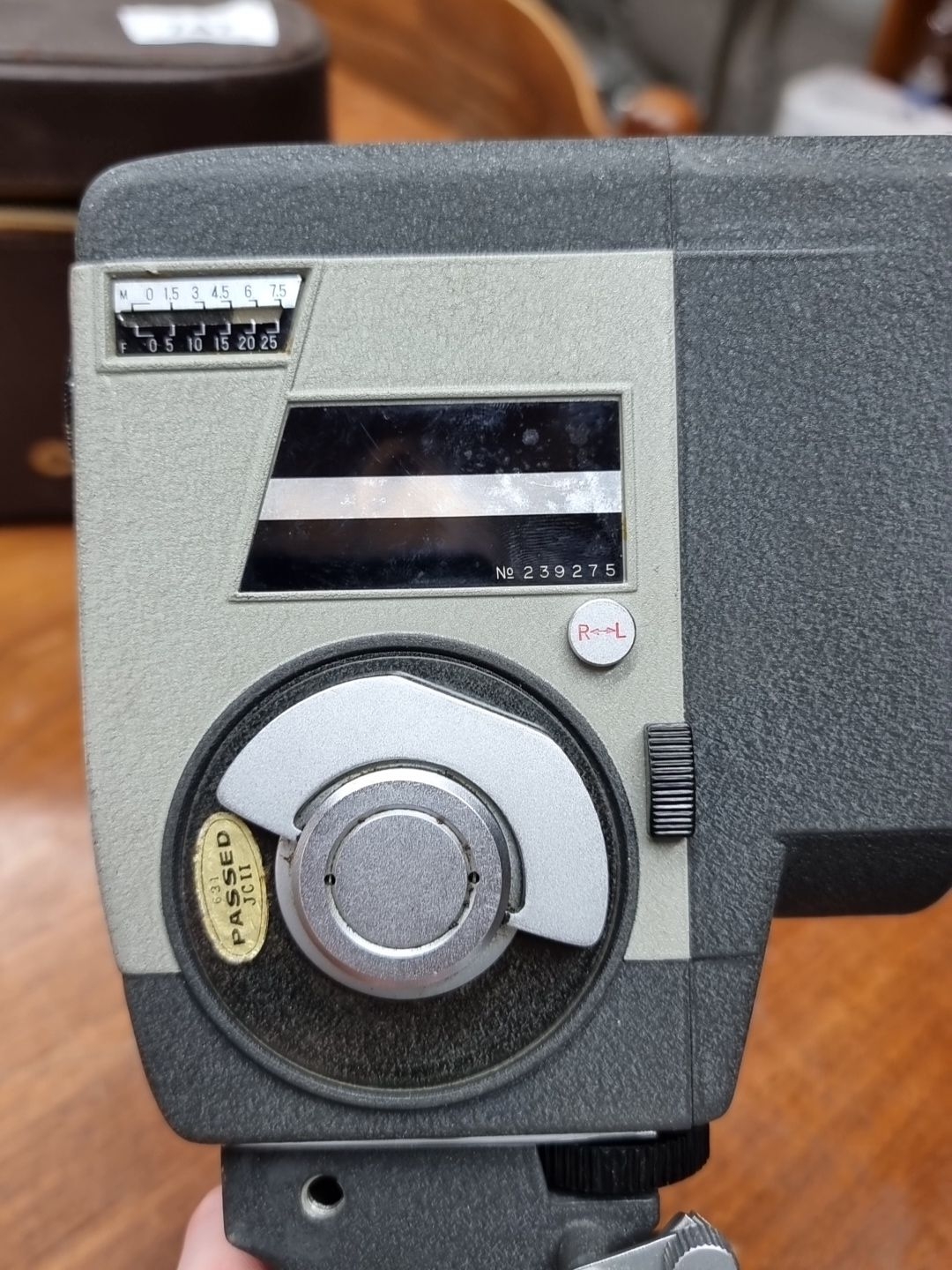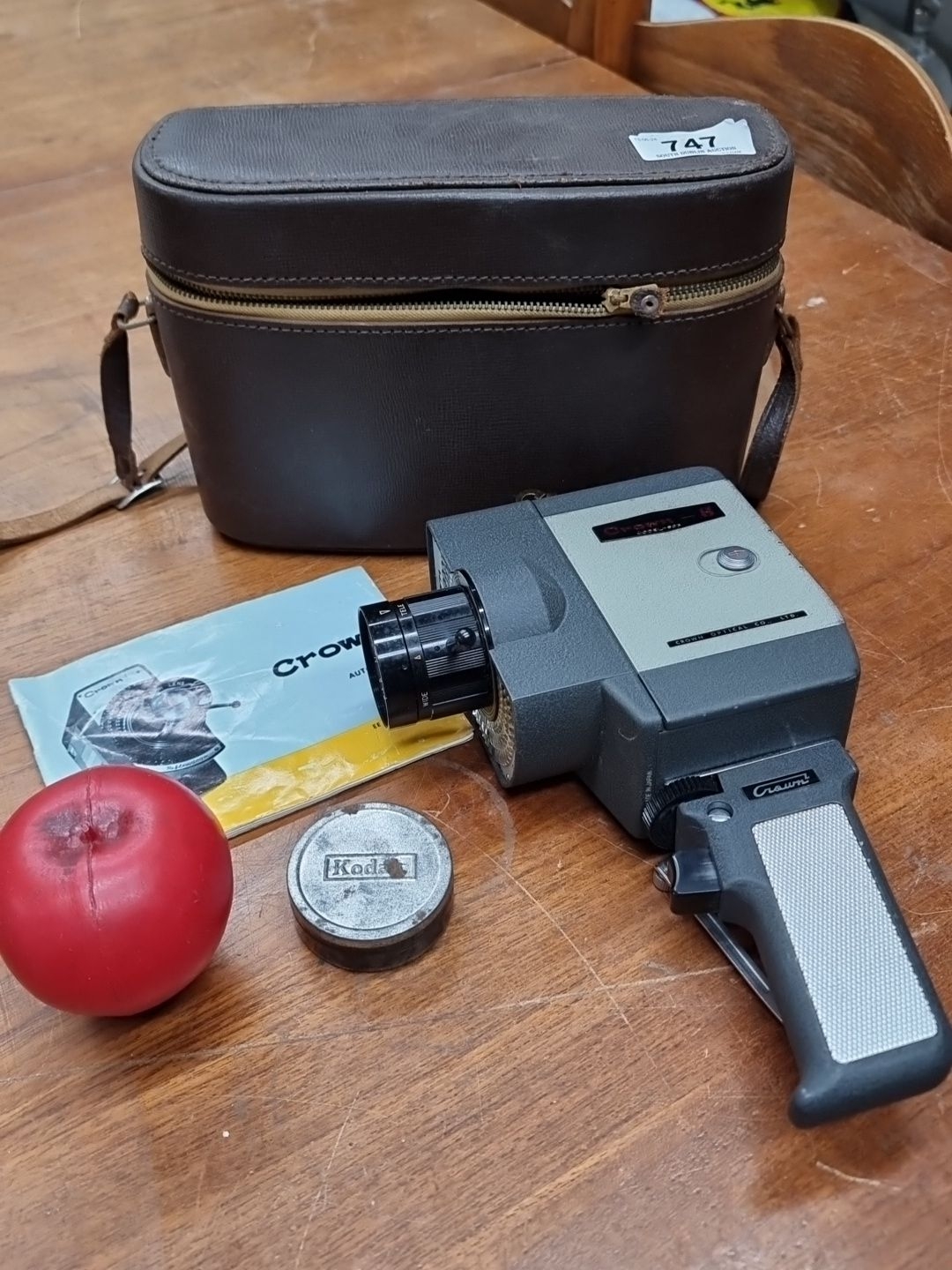 A vintage Crown 8mm Cine Camera, model 8, with original leather case and instruction manual. Serial Number 239275.