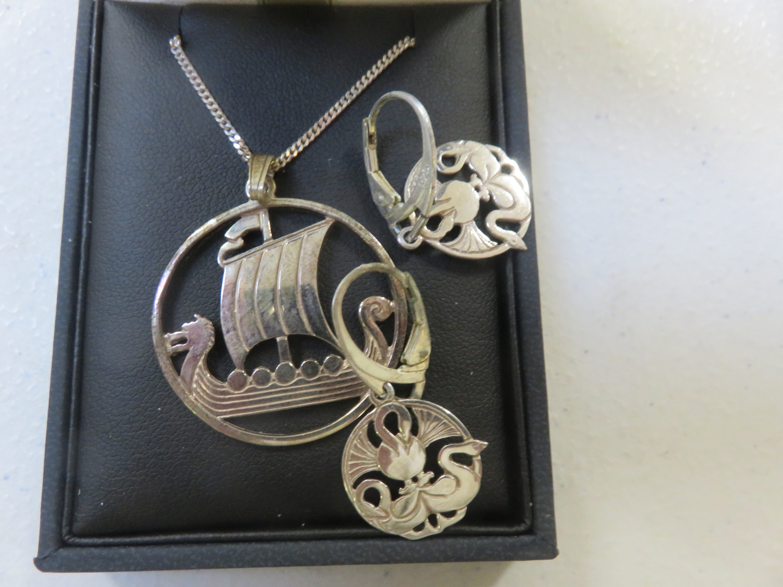Vintage Shetland Celtic Silver Pendant, Chain and Earrings