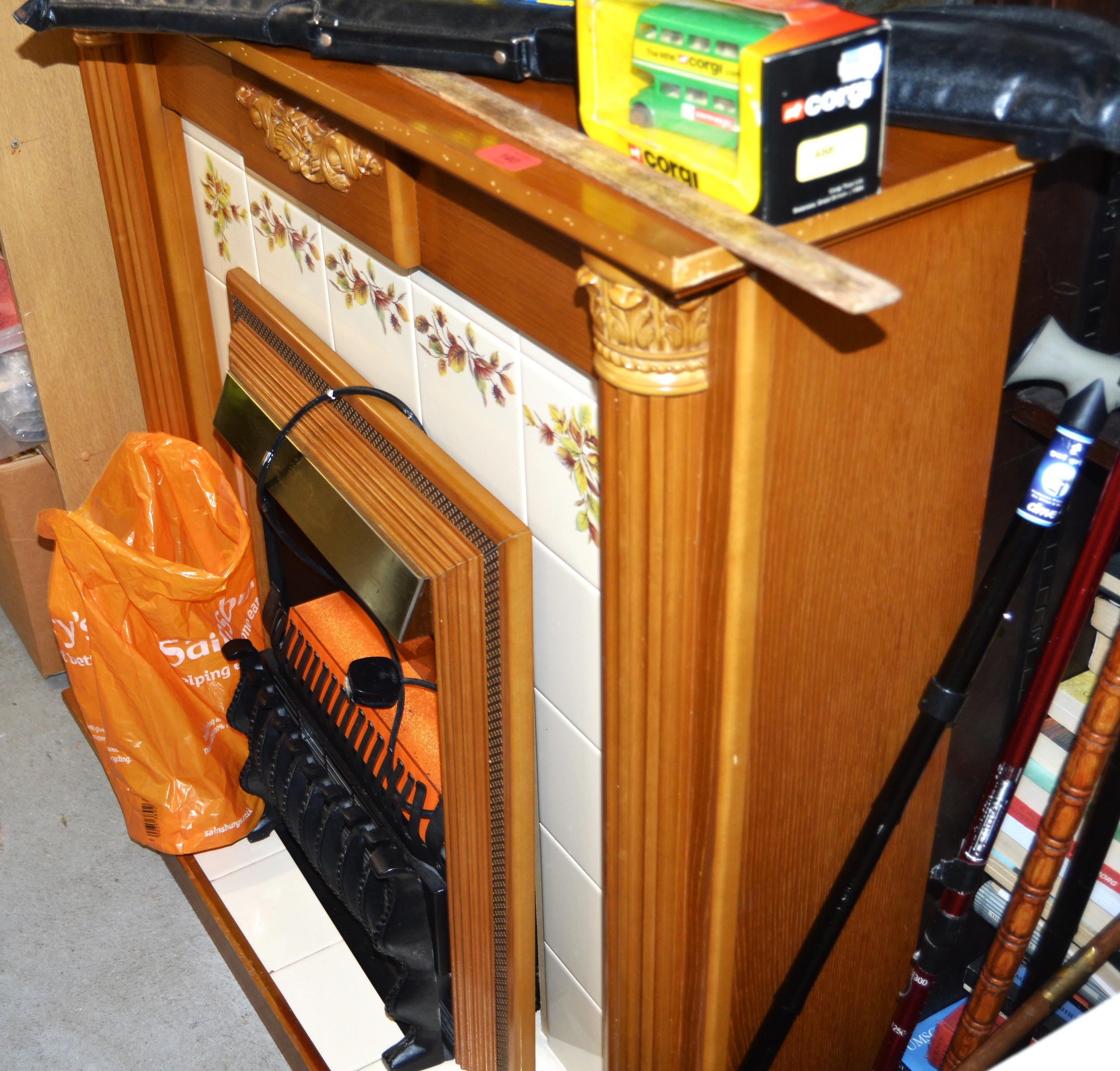 Tiled Surround Fitted Electric Fire having a Corinthian Columns flanking each side and Acanthus Leaves