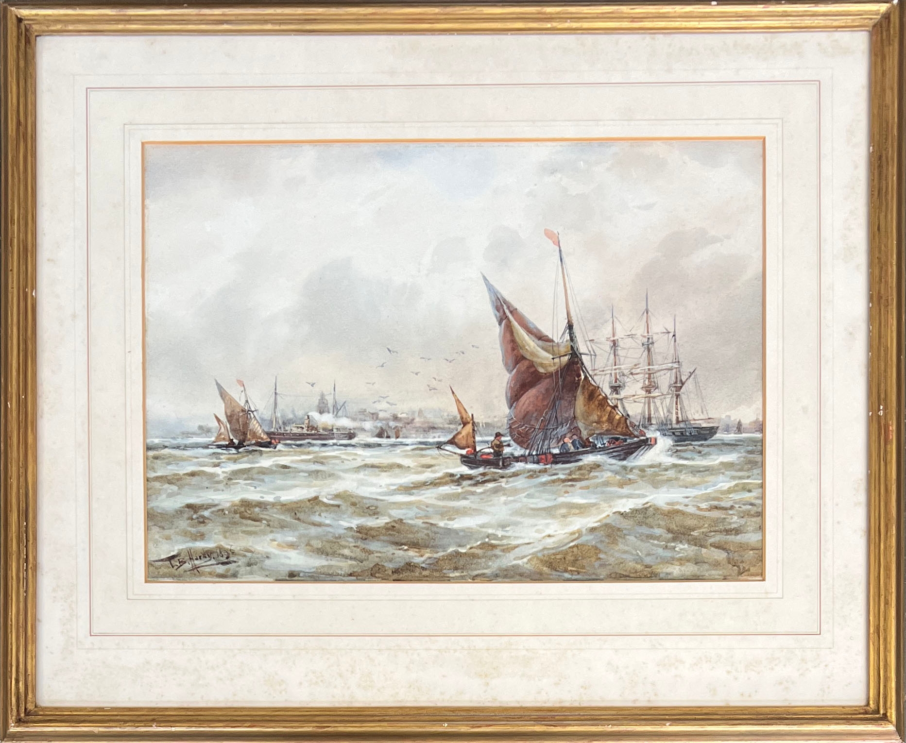 Thomas Bush Hardy (1842-1897), maritime watercolour, signed and dated 1896 lower left, bears framers for J.J Patrickson Fulham Road, 24x34cm