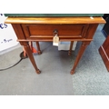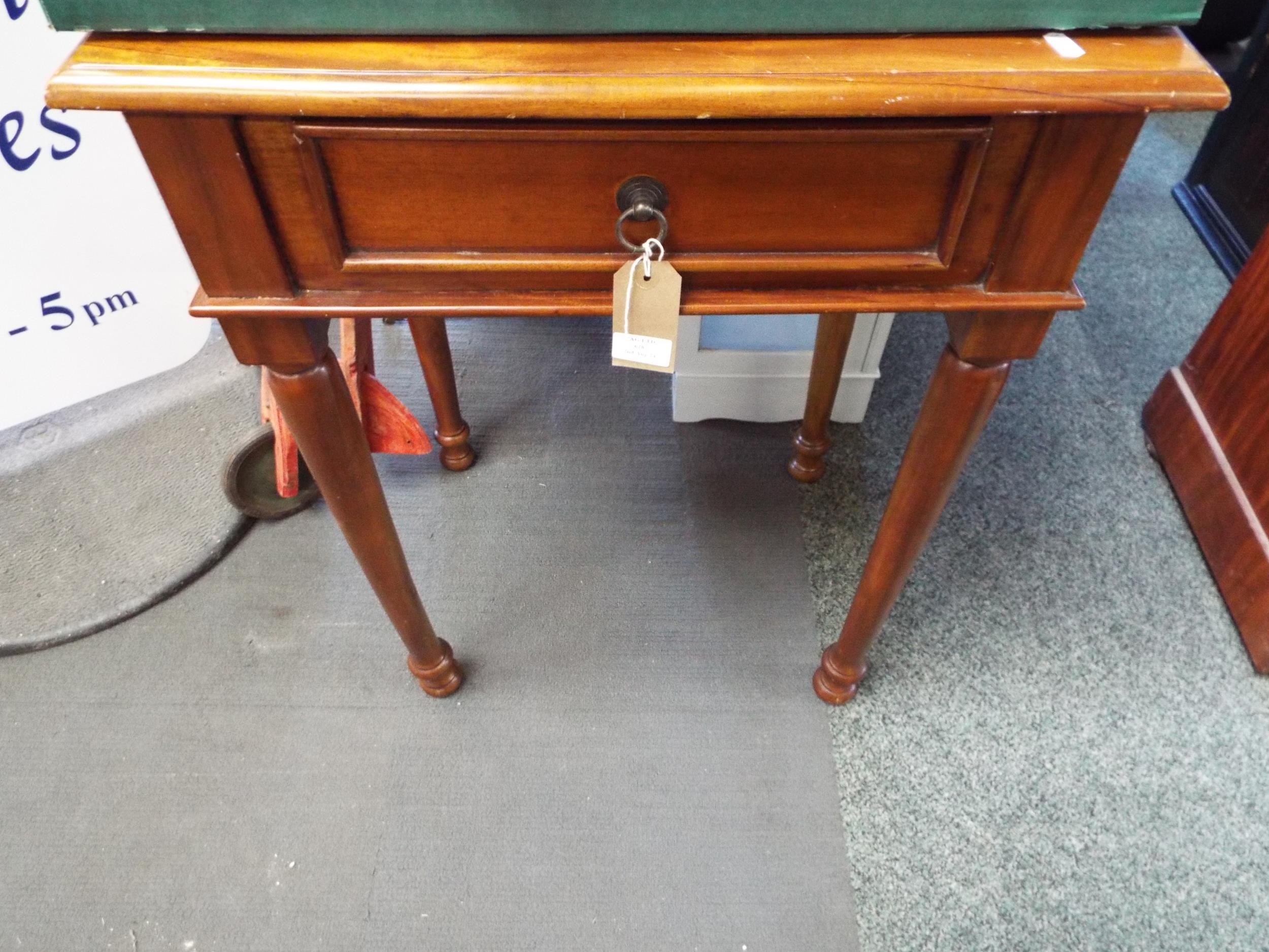 A cherry wood side table with short drawer