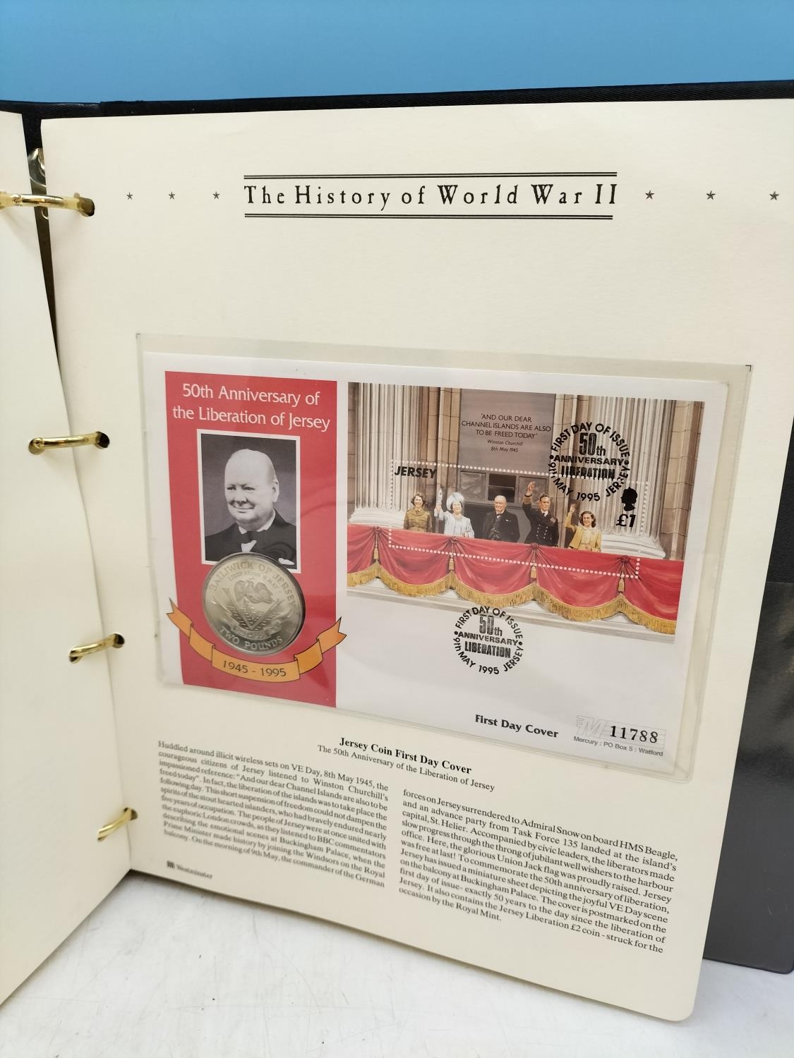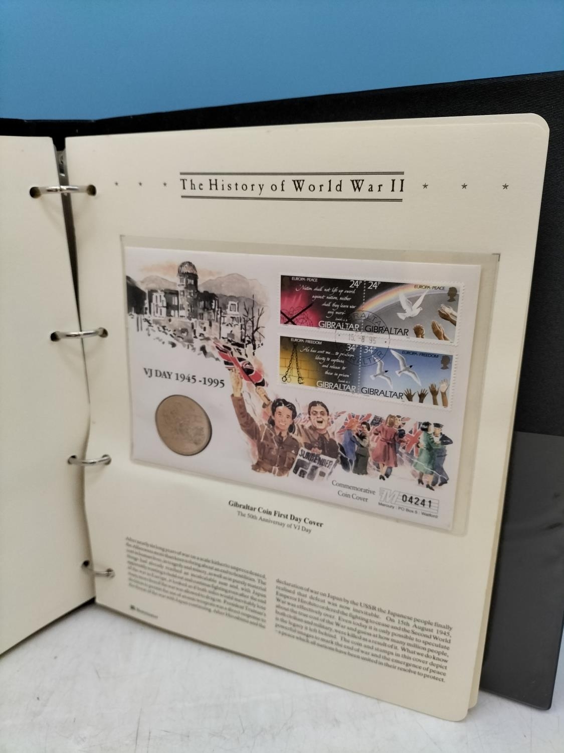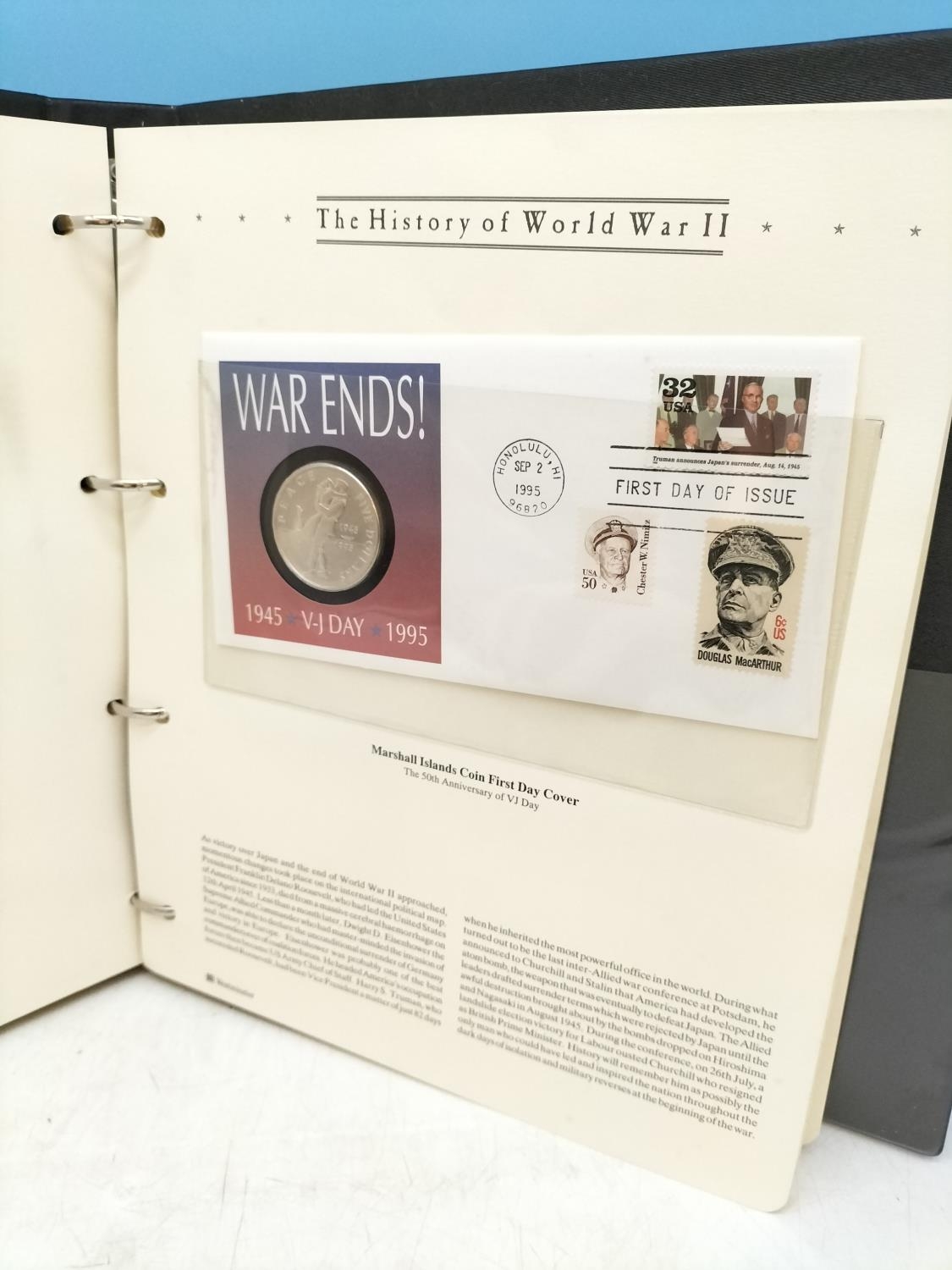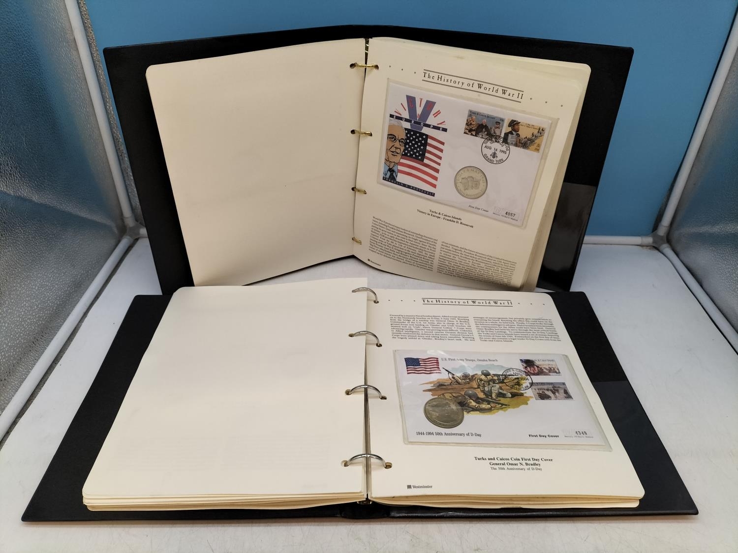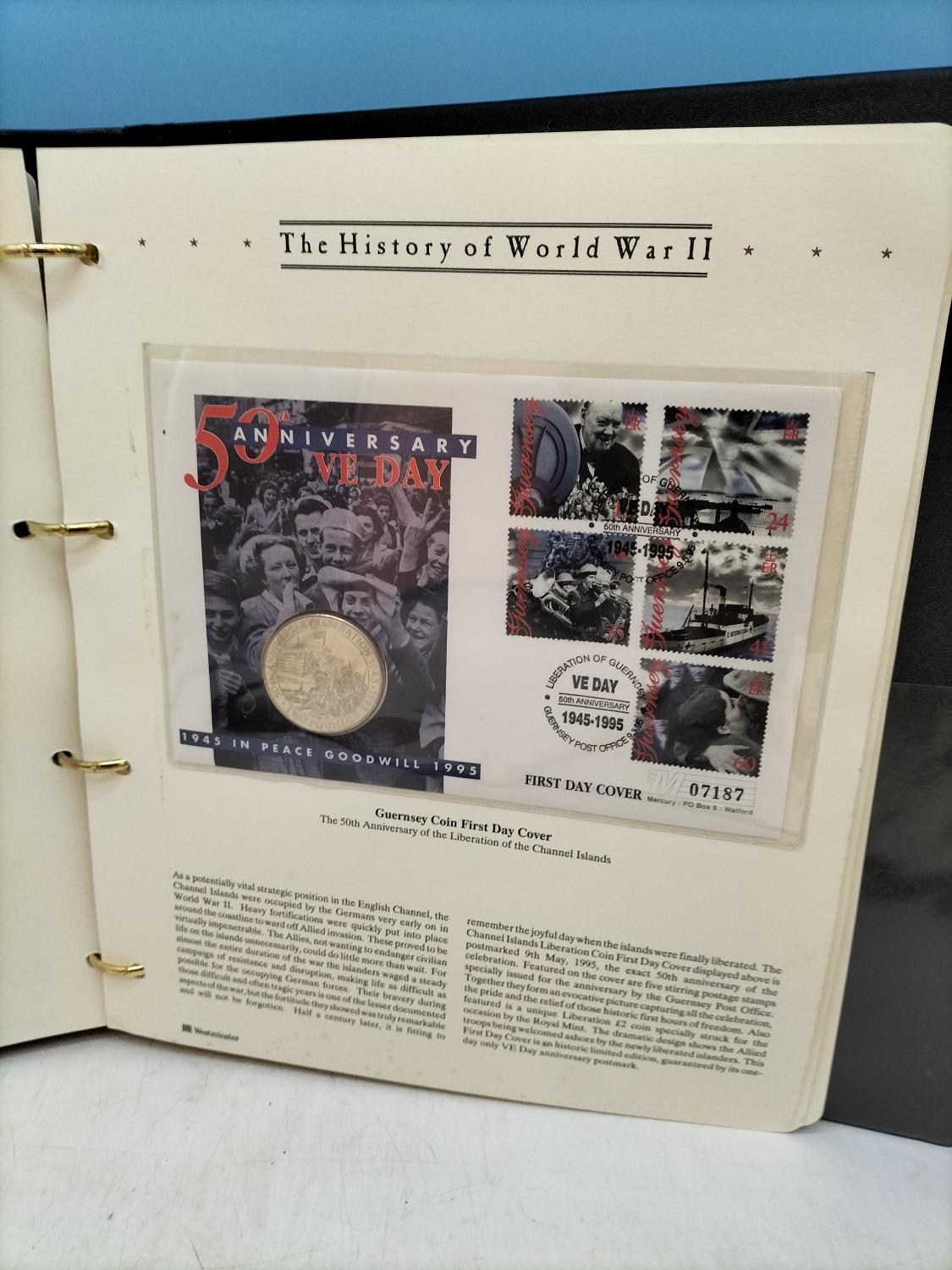 Westminster WWII First Day Coin and Stamp Sets in Binders. 27 in Total.